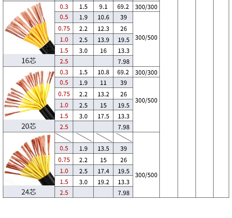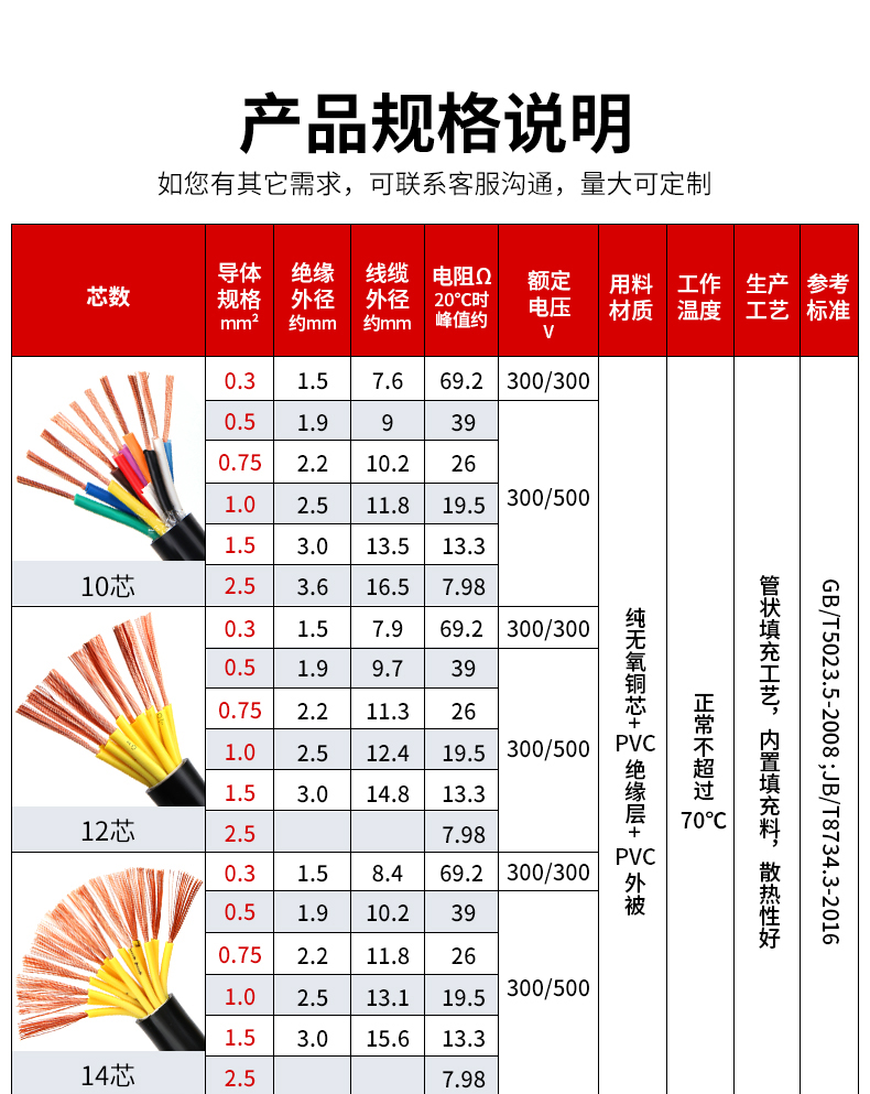 爆款 热销【 国标@包检】RVV电线软电缆线10/12/14/20芯0.5 0.75 1.0 1.5 2.5平方铜芯电源线电线护套线家用连接户外监控电源线电缆线抄表消防电气连接供电线(防水 抗冻)