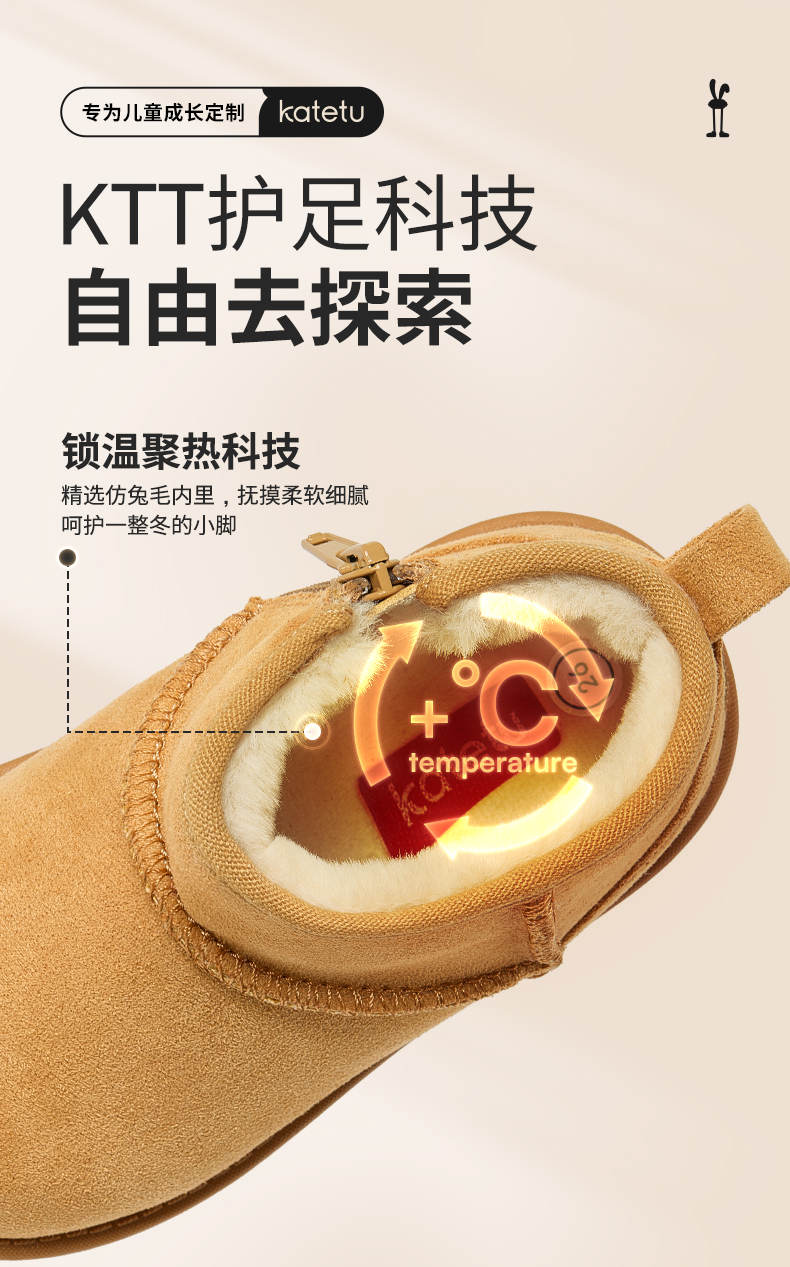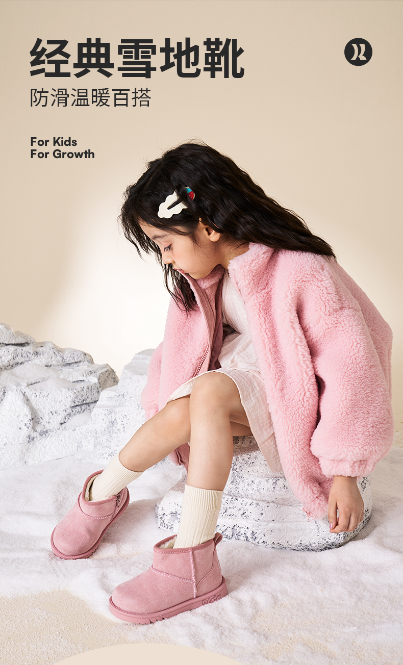 卡特兔儿童棉鞋2023秋冬新款软底防滑女童棉靴加绒保暖儿童雪地靴