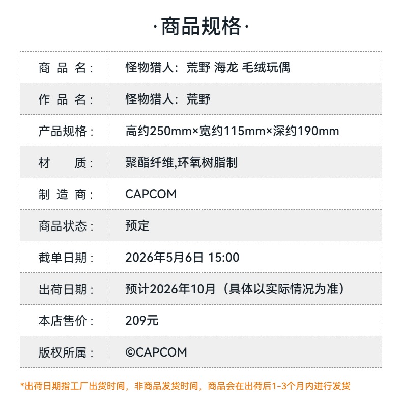 【GSC预售定金】怪物猎人:荒野 海龙 毛绒玩偶