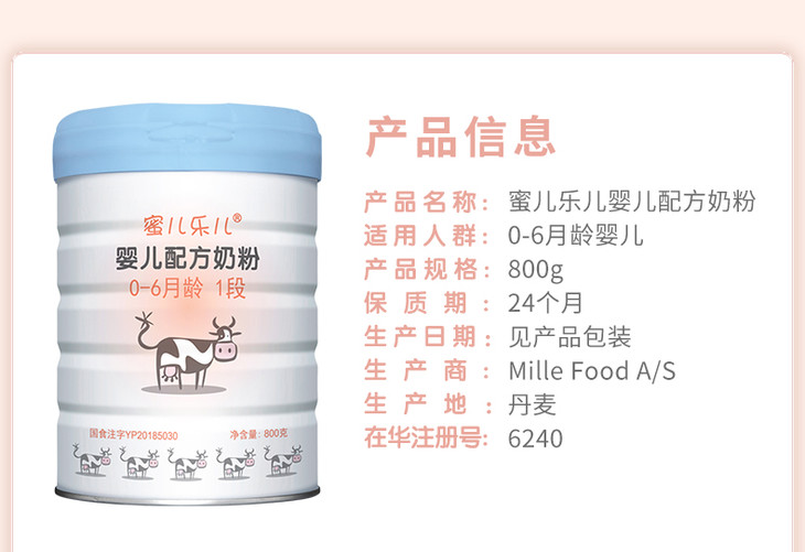 Mille麦蔻【蜜儿乐儿1段800g】0-6个月婴儿配方奶粉【New】【麦蔻】