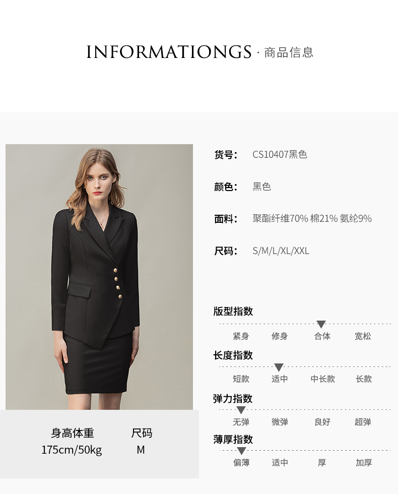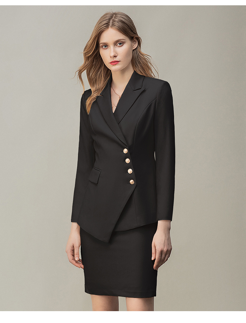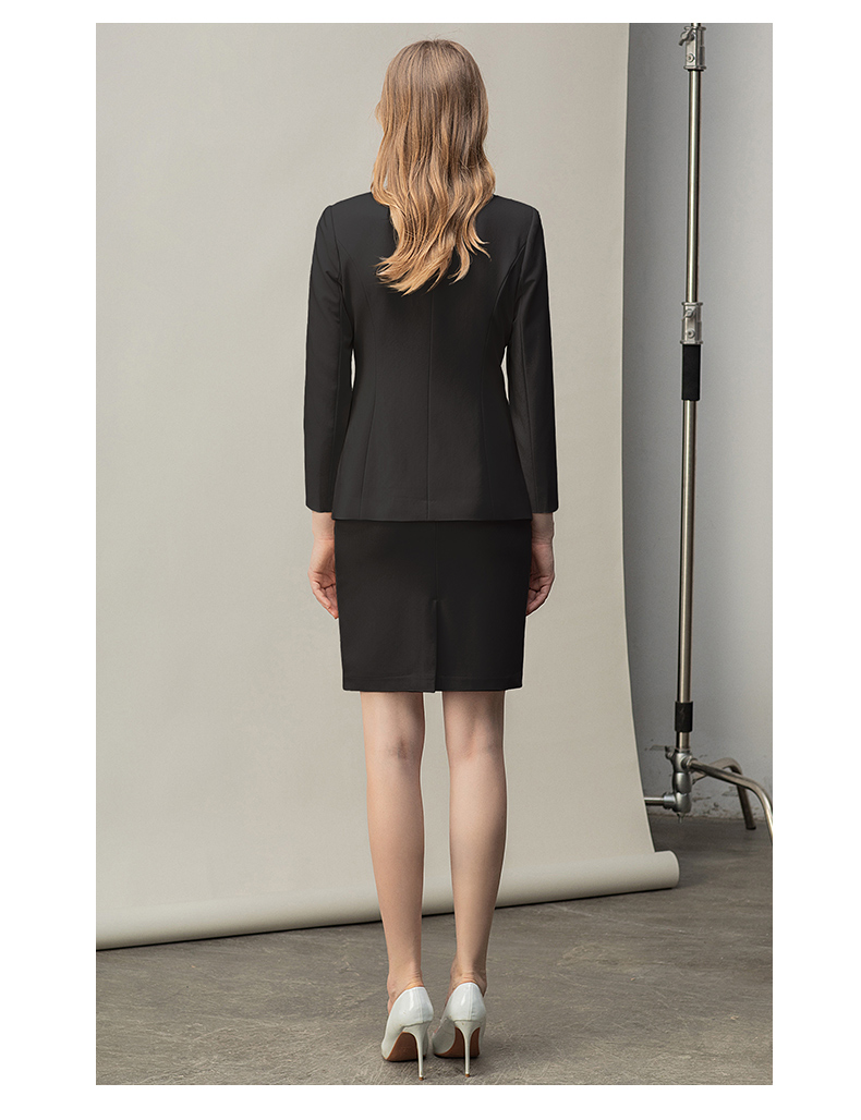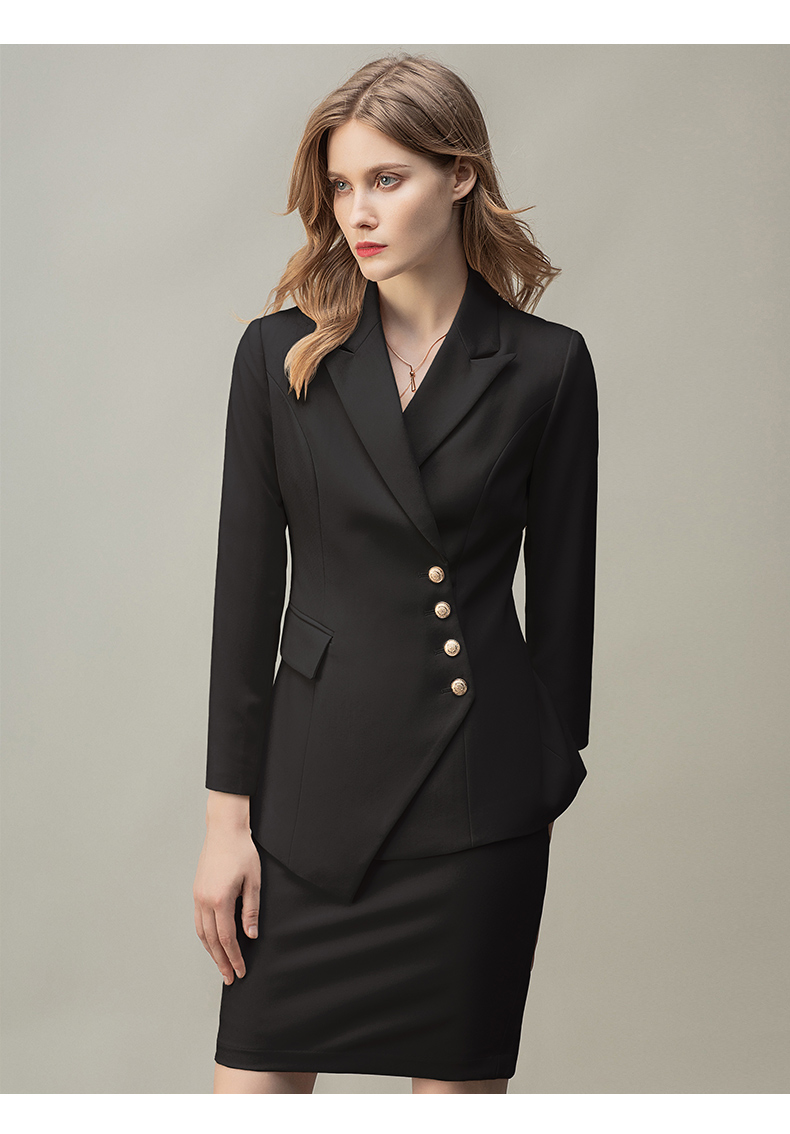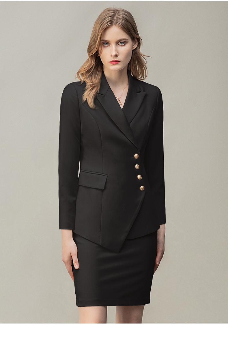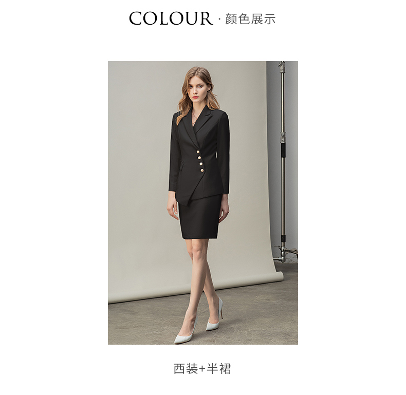 IWY/时尚气质黑色长袖西装半裙套装职业装女装通勤修身西服套裙秋冬款CS10407黑色