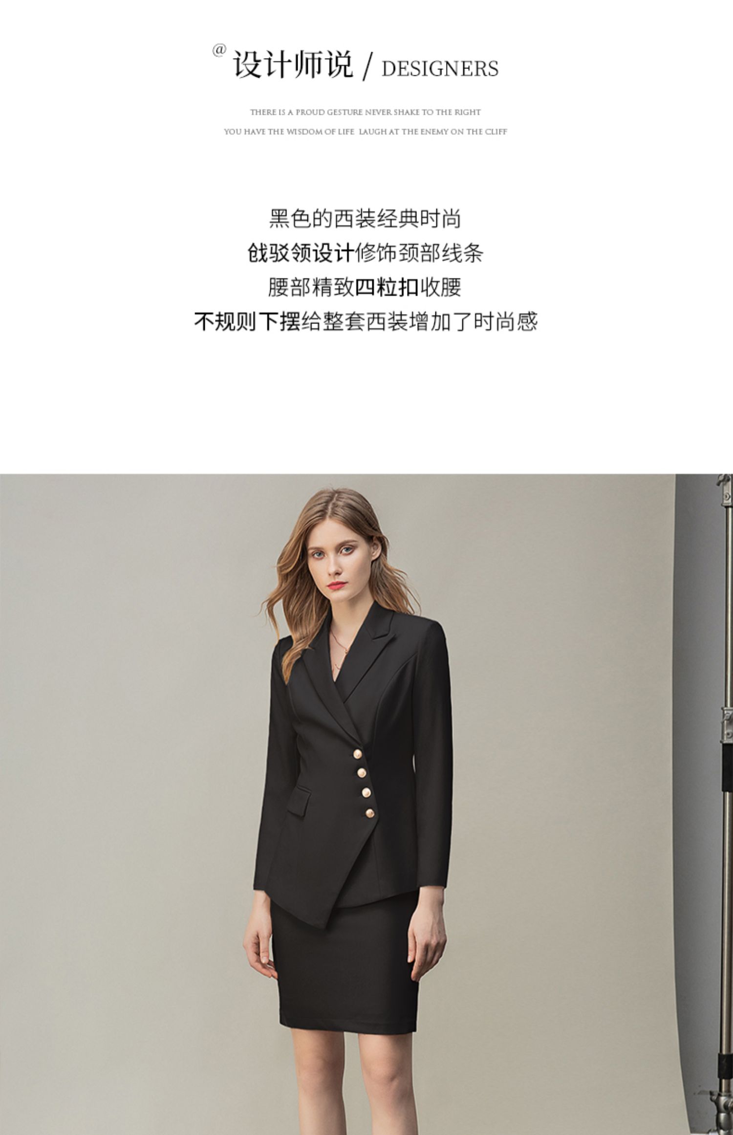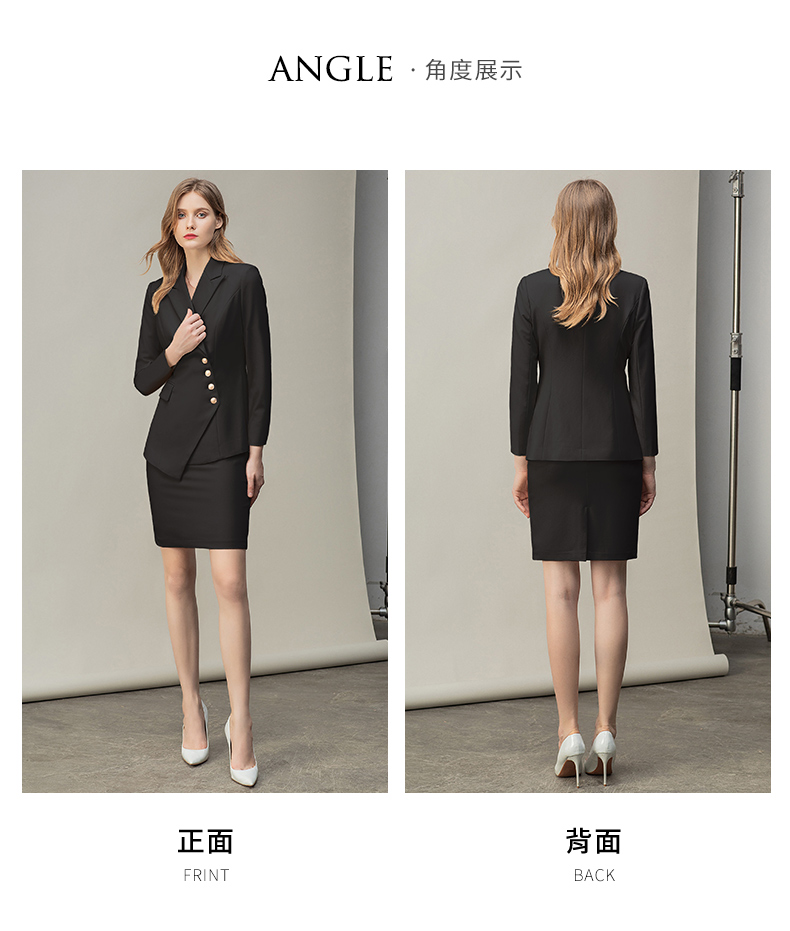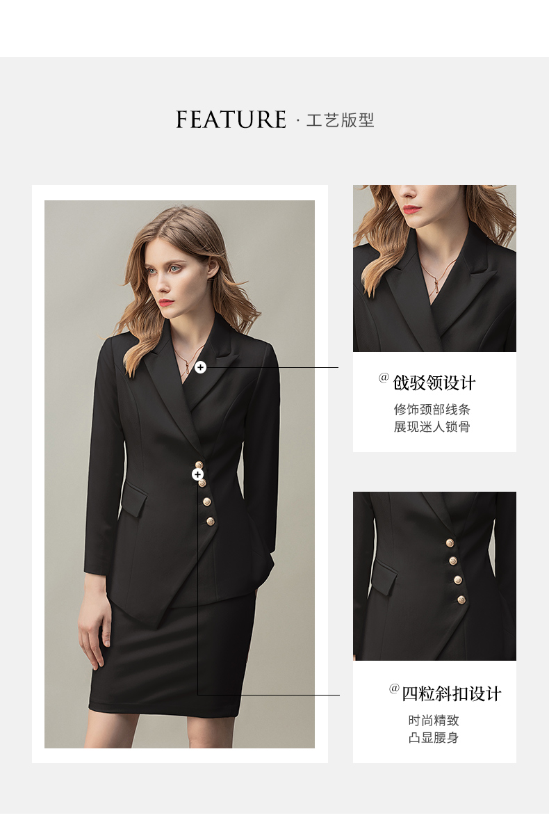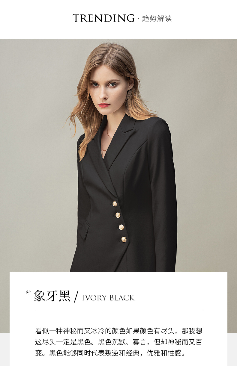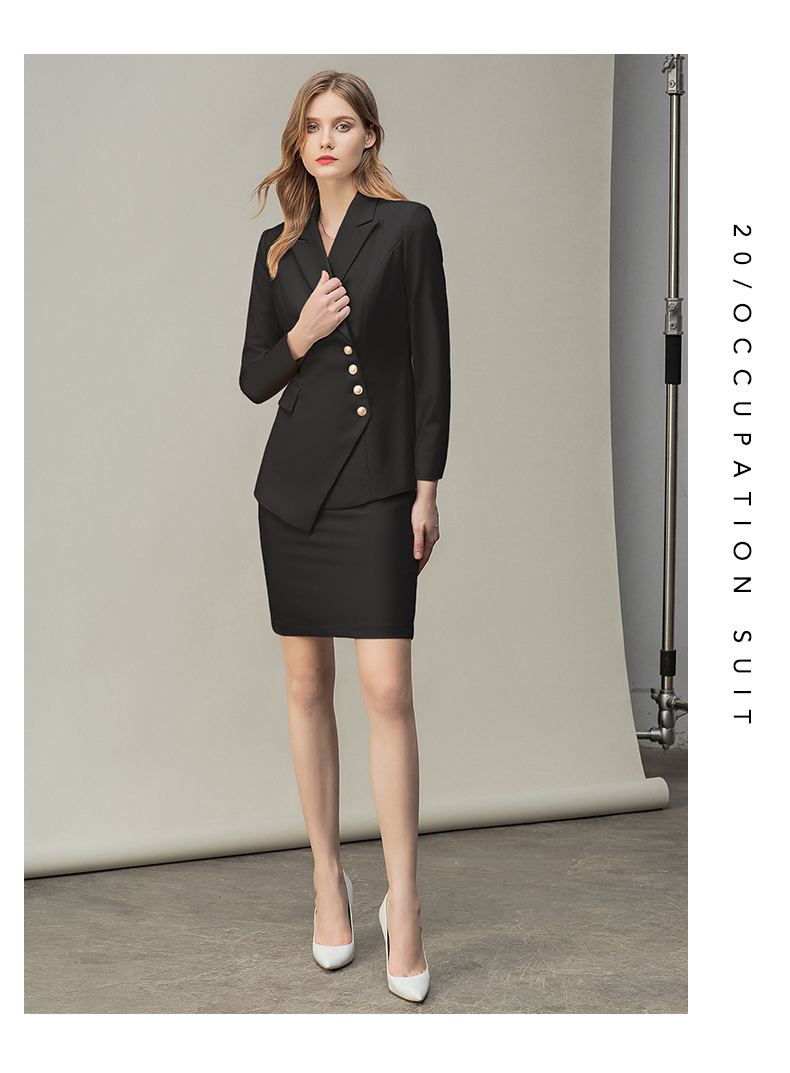 IWY/时尚气质黑色长袖西装半裙套装职业装女装通勤修身西服套裙秋冬款CS10407黑色