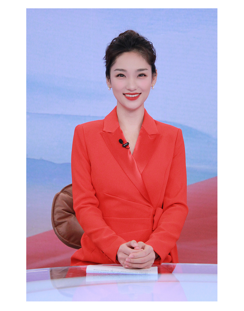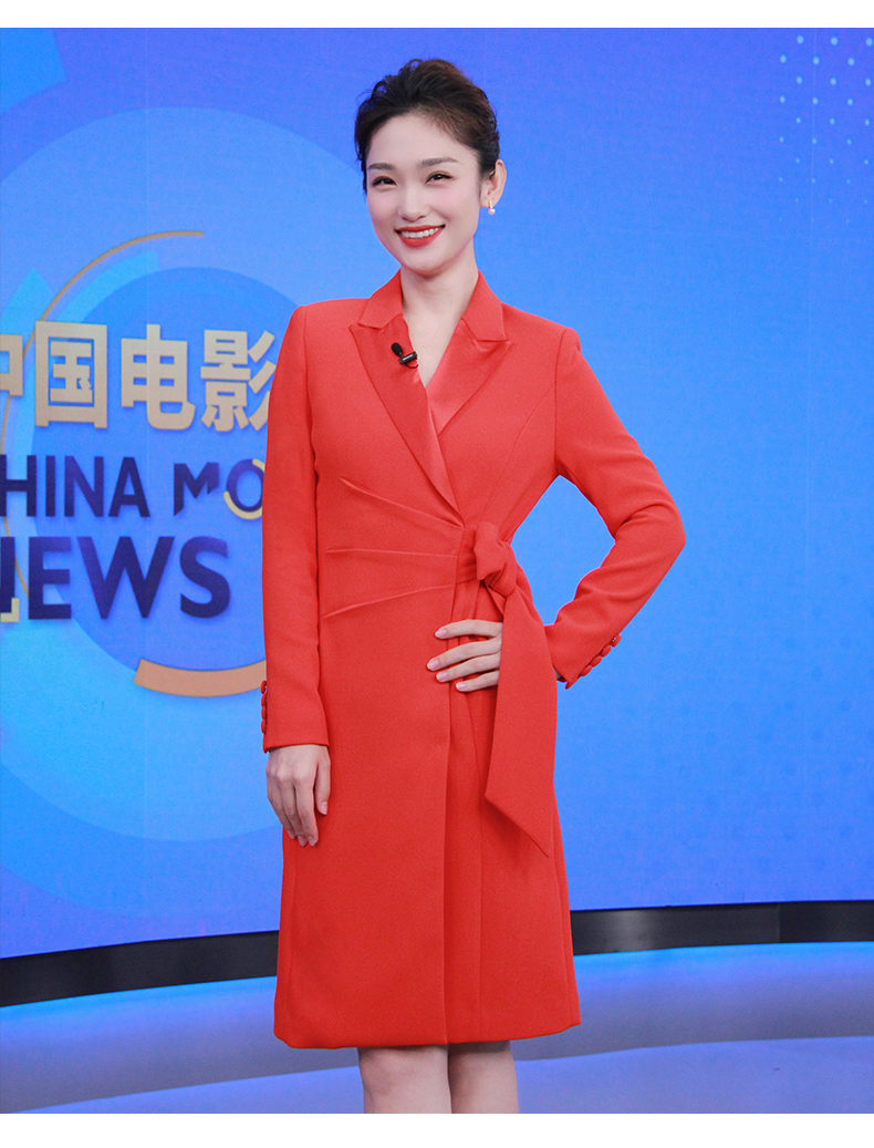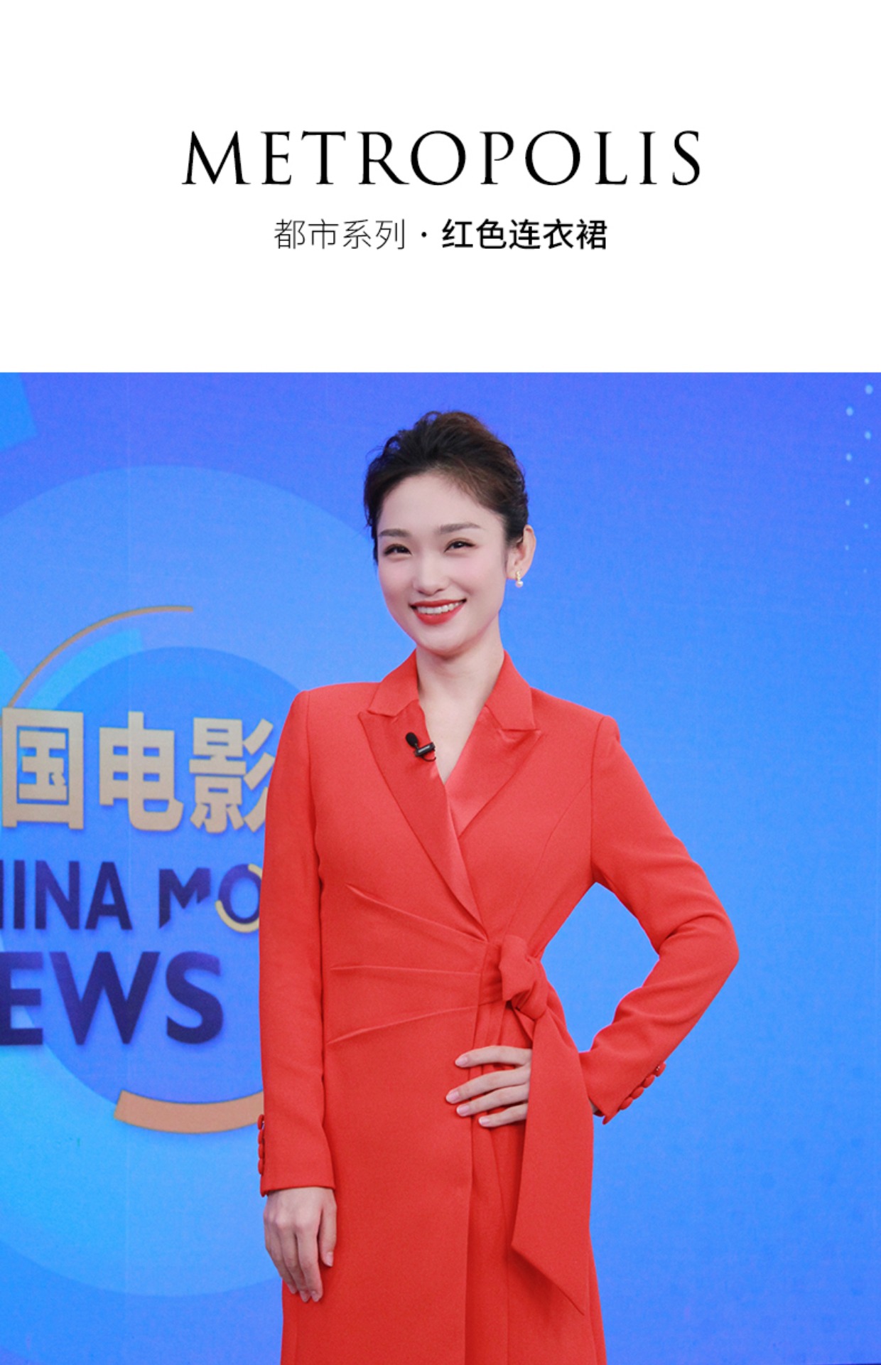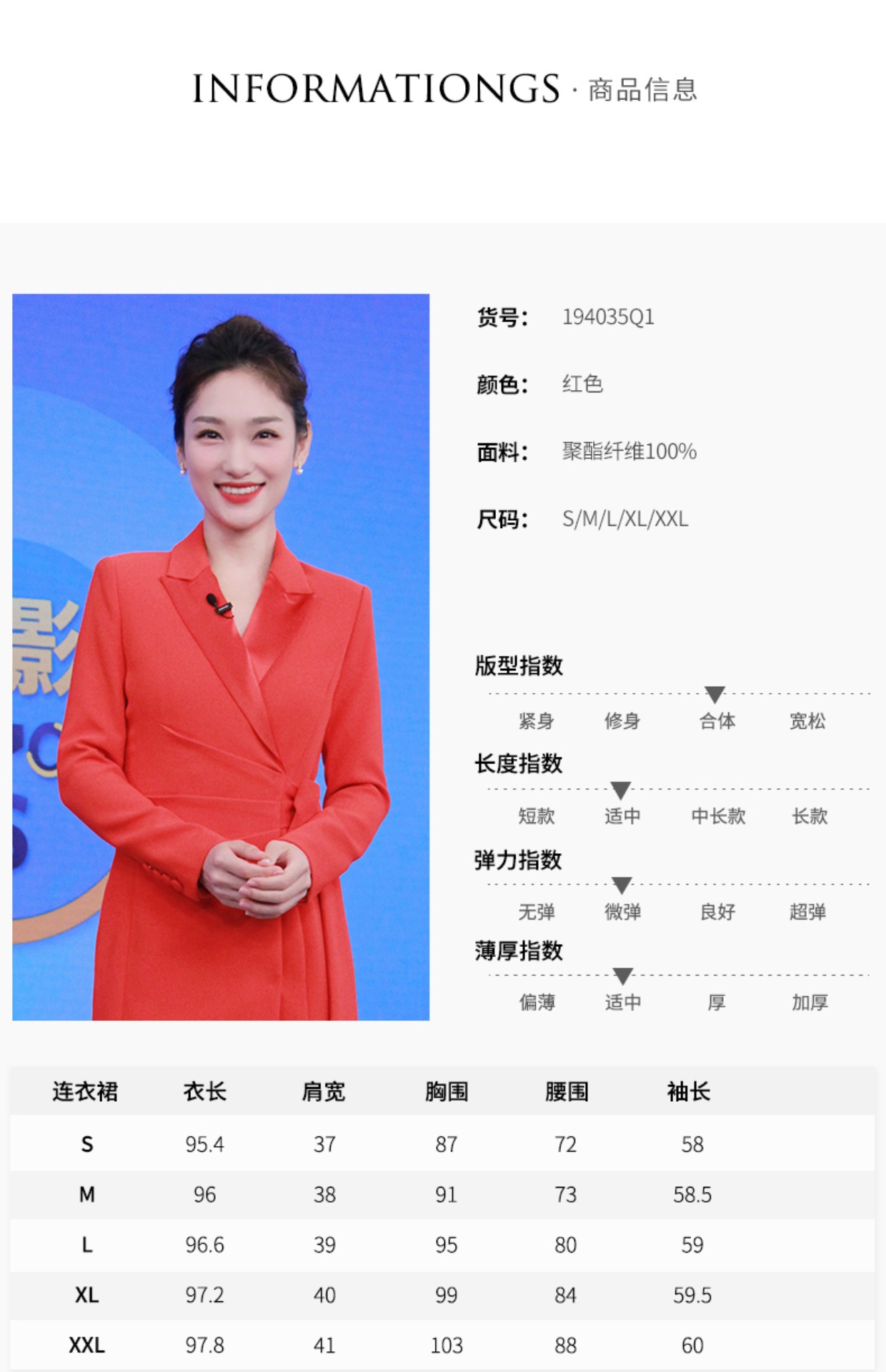 IWY/高级感绸缎领拼接西装连衣裙女红色艺考播音主持人正装礼服职业裙194035Q1