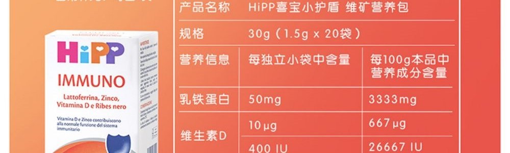 德国 喜宝(HiPP)乳铁蛋白粉剂1.5g*20袋/盒