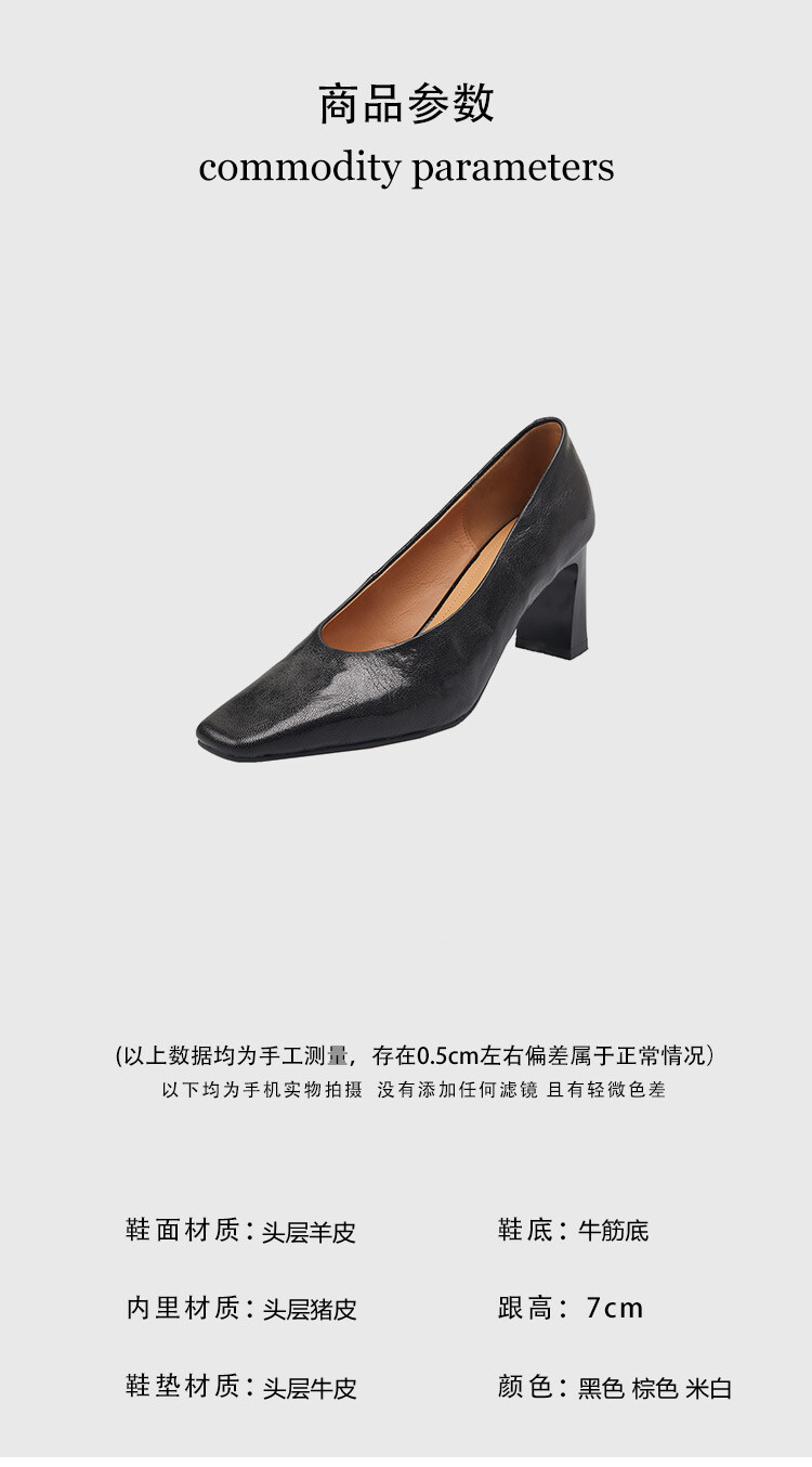 鞋底:牛筋底内里:头层猪皮鞋垫:头层牛皮跟高:7厘米颜色:棕色 黑色 米白尺码:34-40(大小定制不退换)