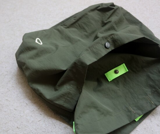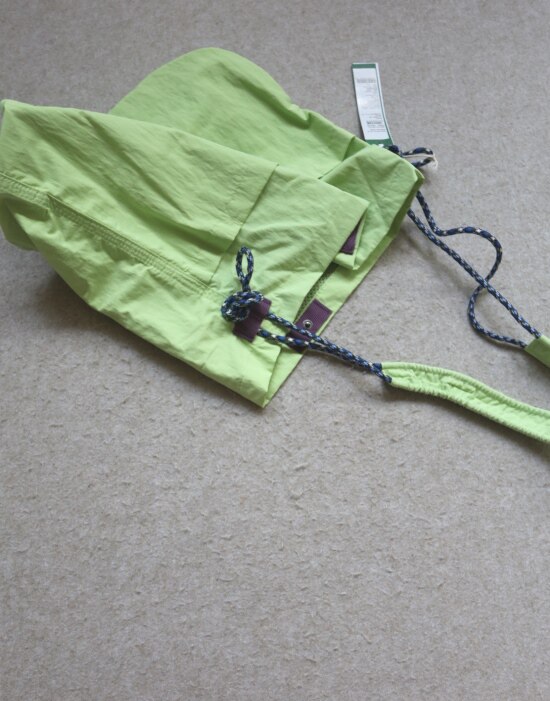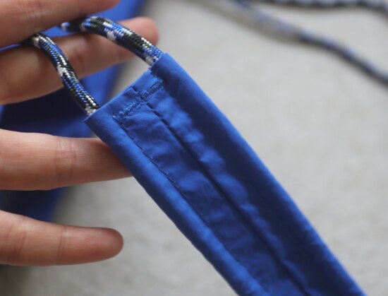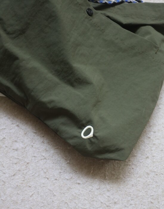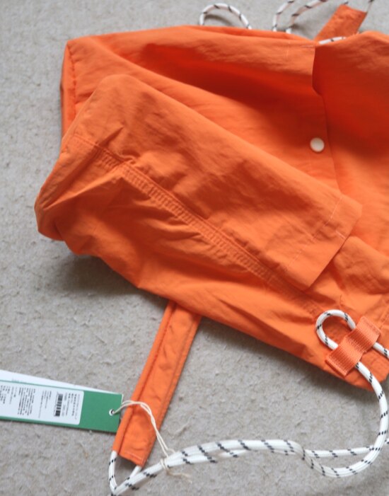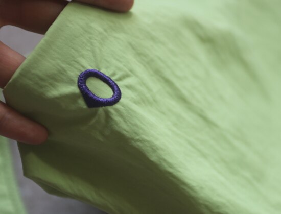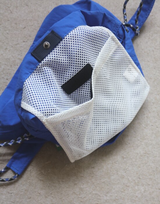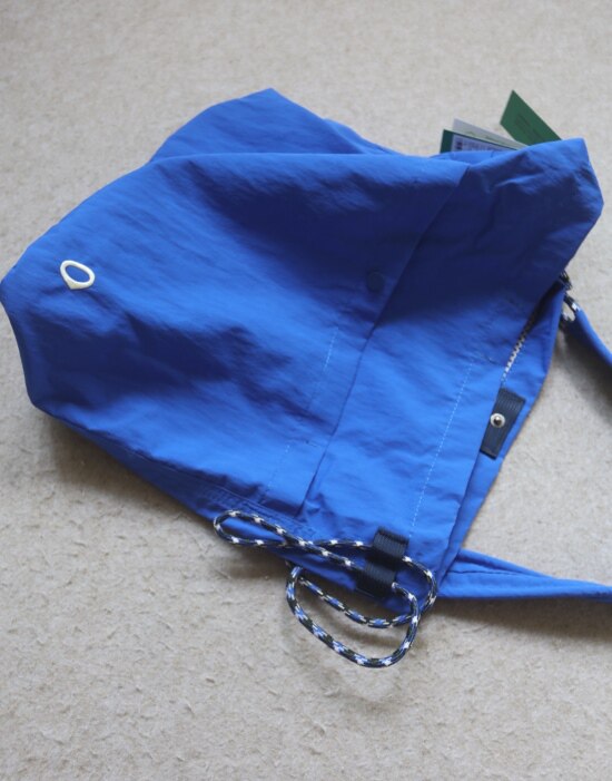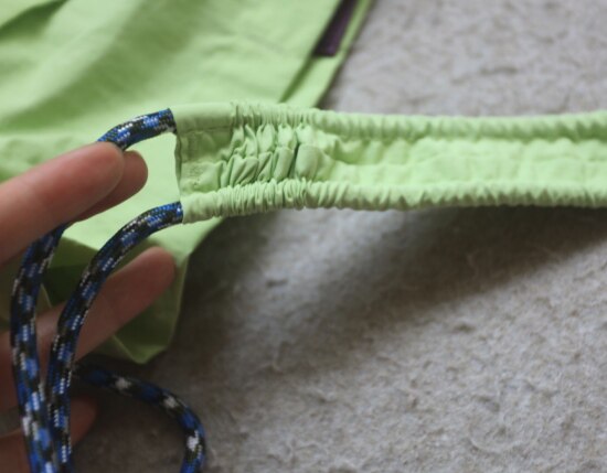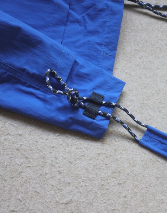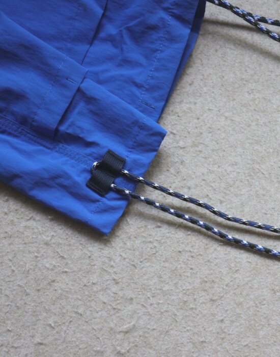 因面料软薄 所以啪啪扣 和两侧抽绳的连接处 都垫了织带 也都有加固缝线
