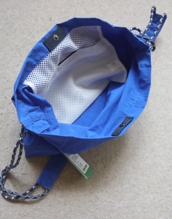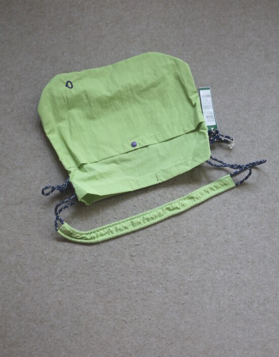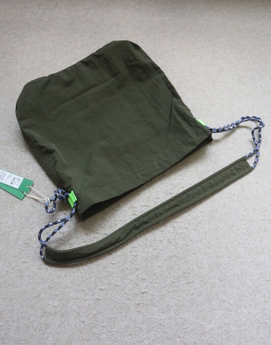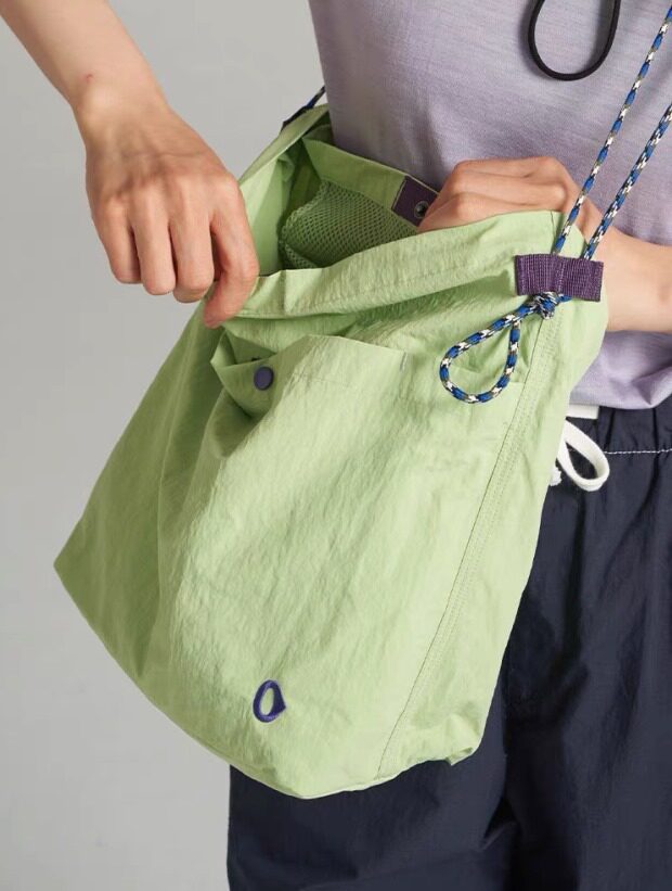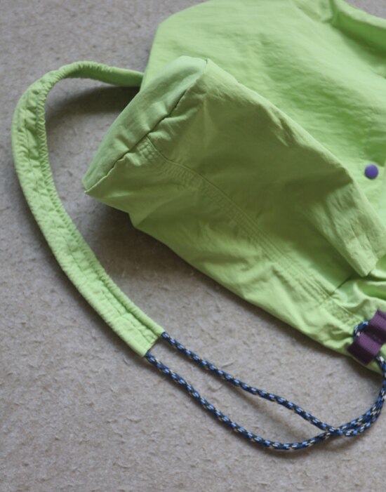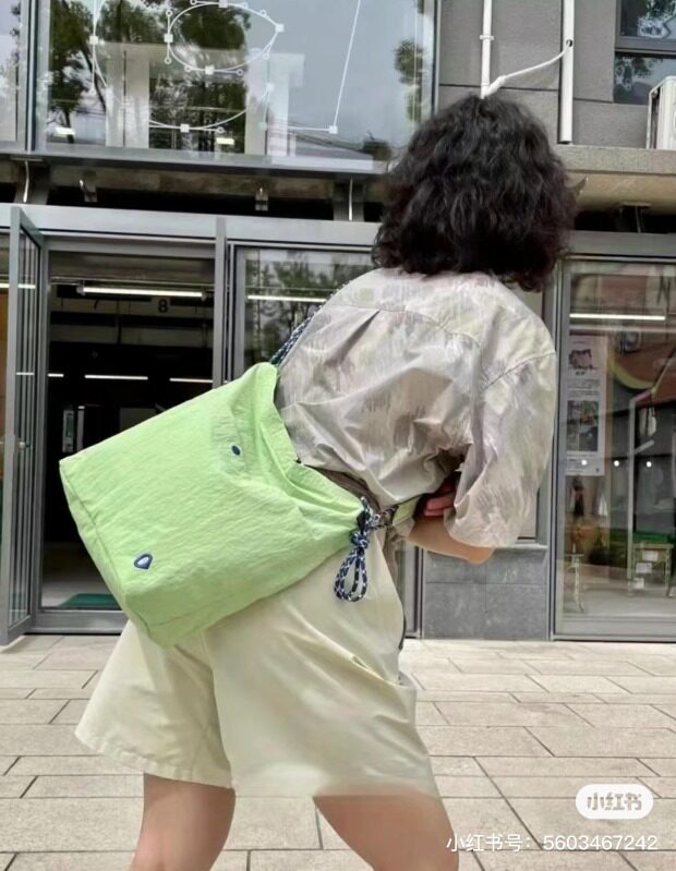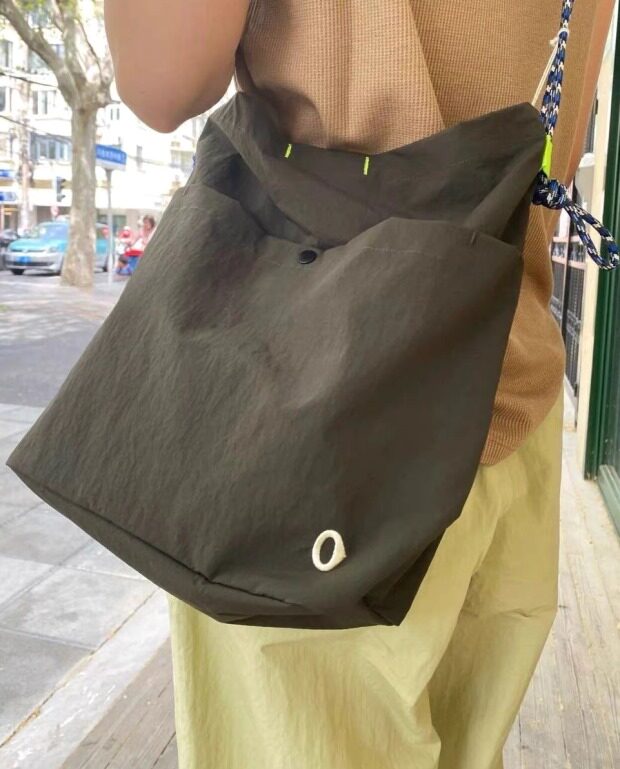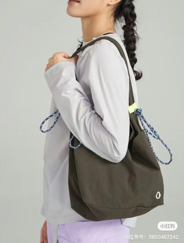 整体很轻便 包身几乎没啥分量 靠抽绳调节 可单肩可斜跨