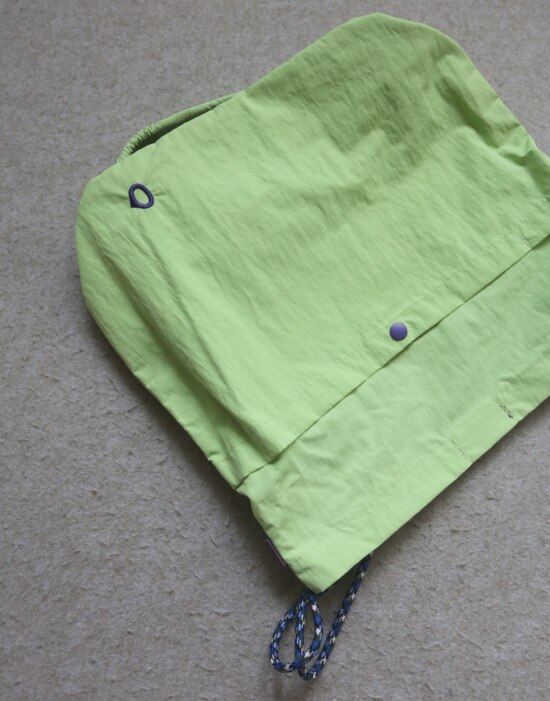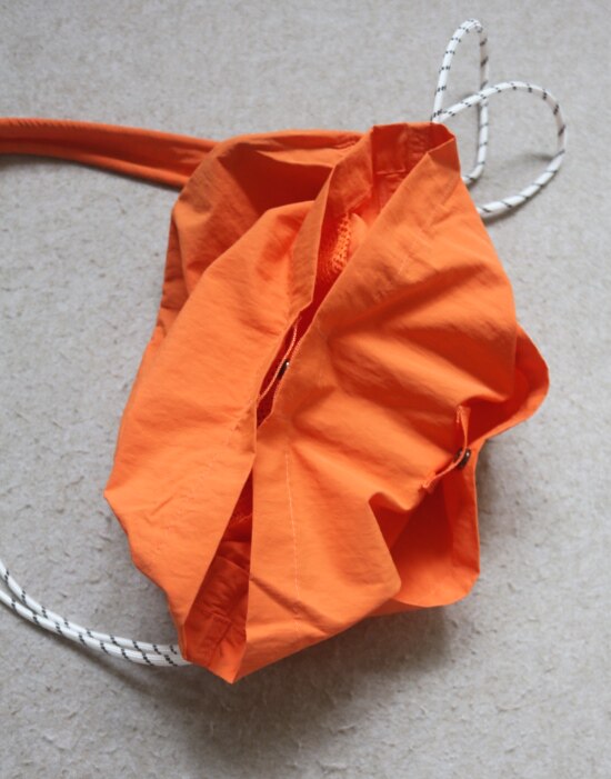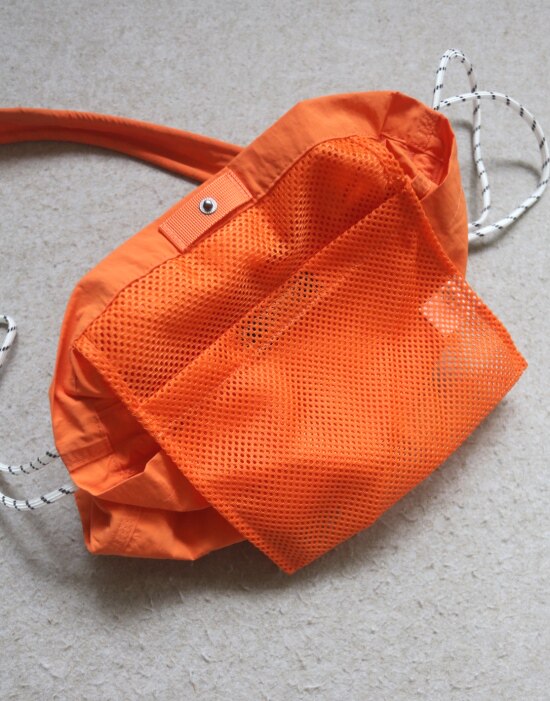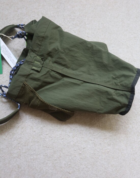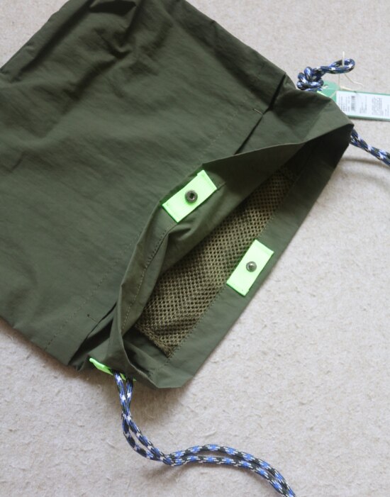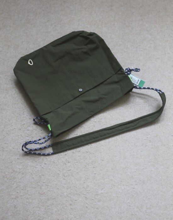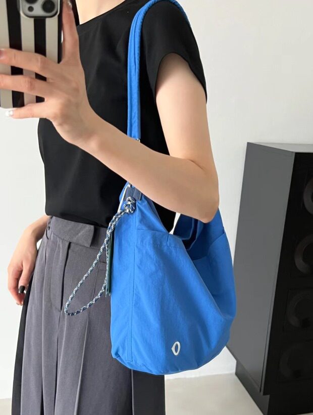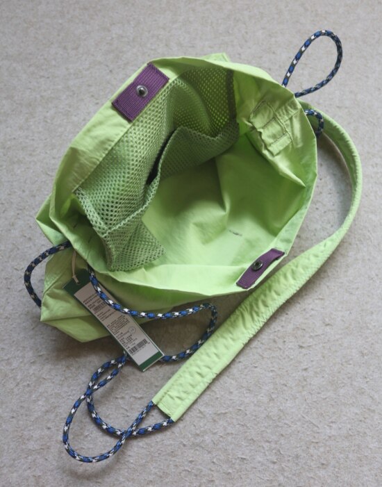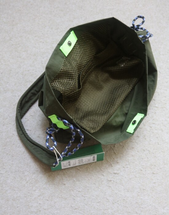 整体很轻便 包身几乎没啥分量 靠抽绳调节 可单肩可斜跨