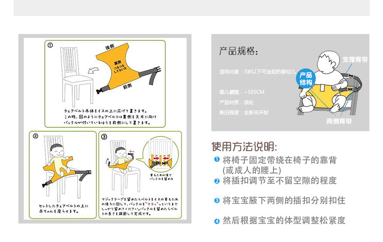 婴儿就餐腰带便携式儿童座椅安全带腰凳餐椅套安全固定座椅餐椅套