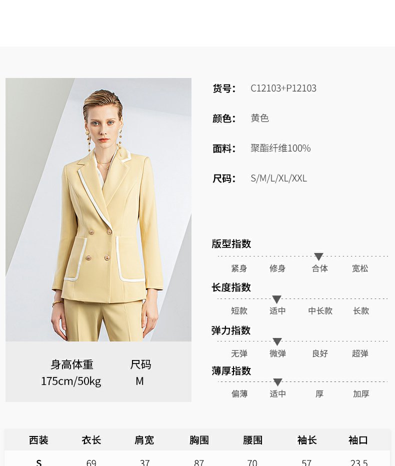 IWY/秋冬黄色西装西服正装两件套职业装女装套装美业正装工作服C12103+P12103