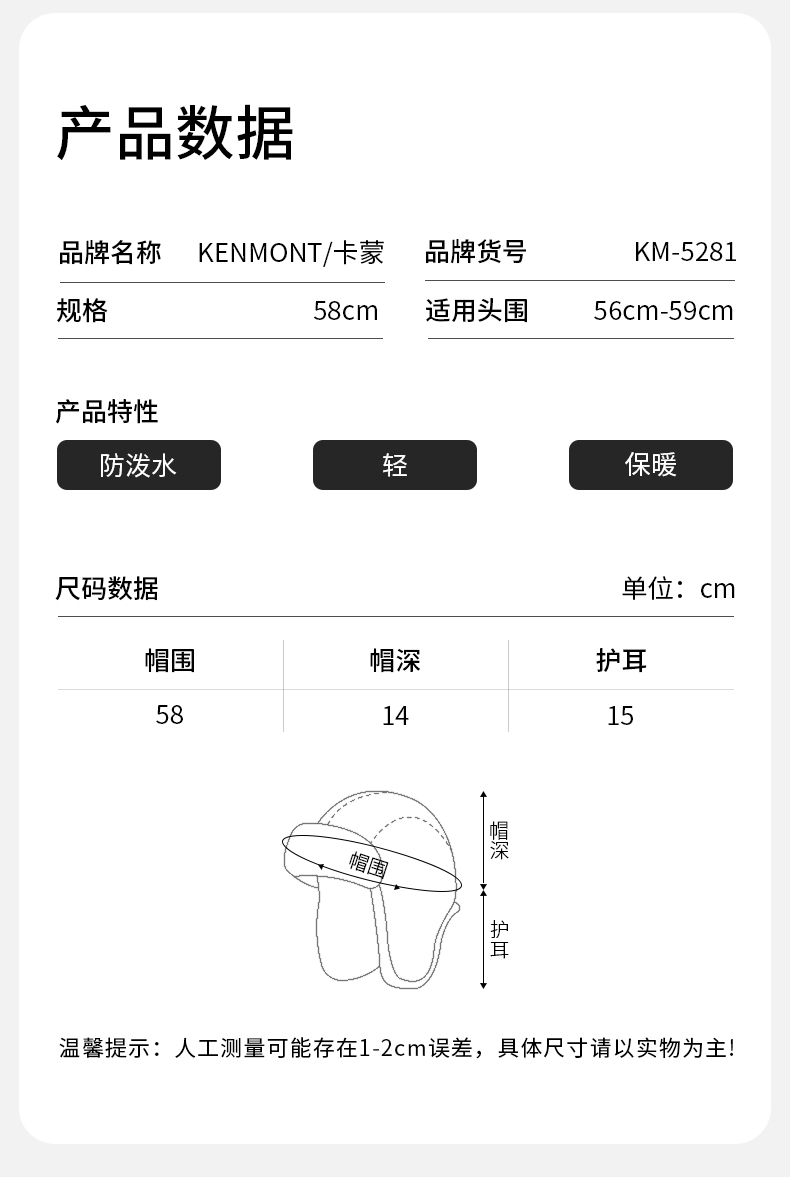 【代发】卡蒙易收纳两戴白鹅绒轻便防泼水羽绒护耳帽