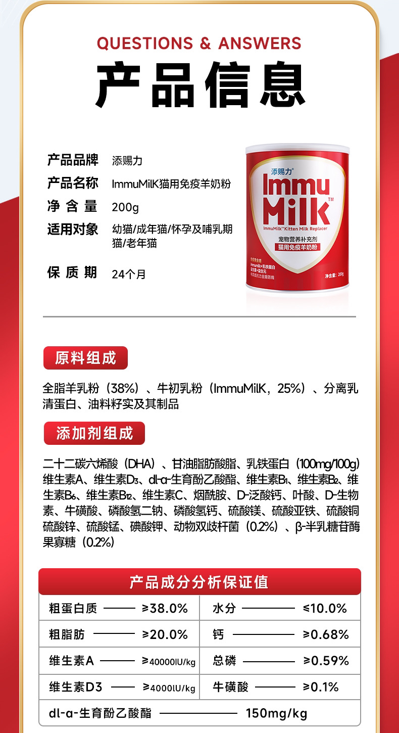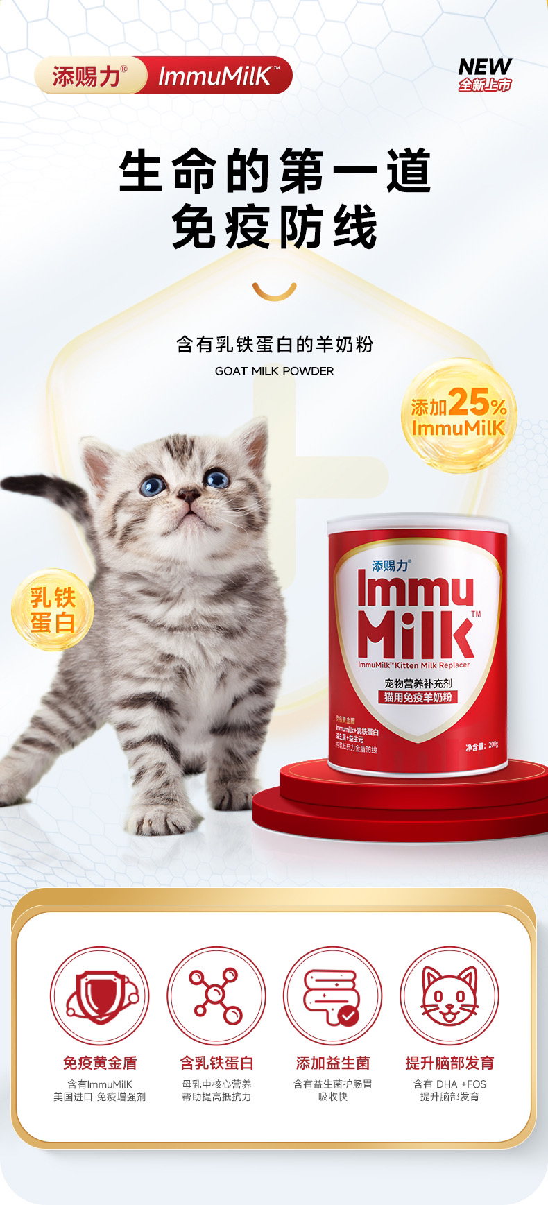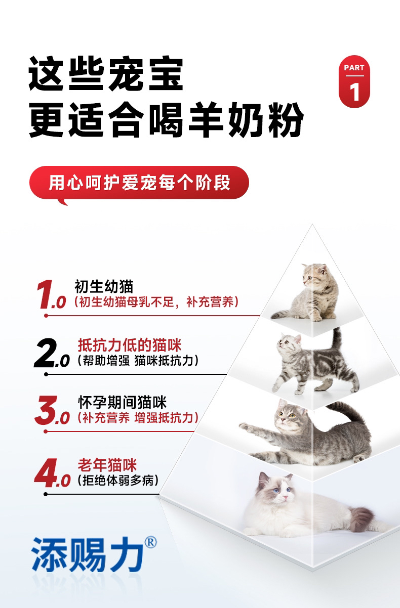 添赐力猫用羊奶粉 幼猫/成年猫/怀孕及哺乳期/老年猫 添加牛初乳粉 200g/罐