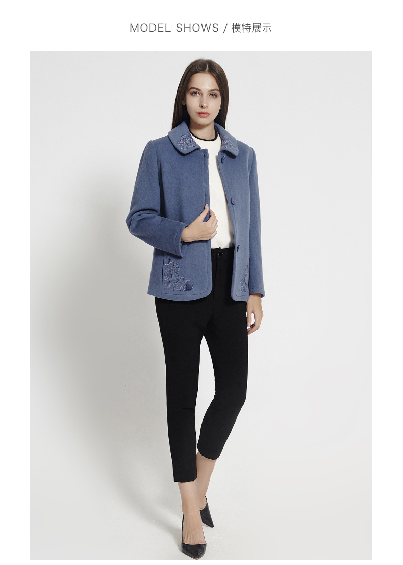 佐尔美秋冬女装气质纯色复古单排扣短款女毛呢外套E64ZD30
