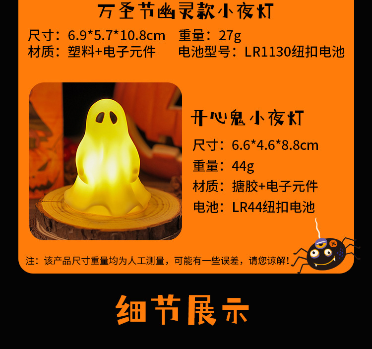 【万圣节幽灵款小夜灯!敲有氛围感】万圣节led手提南瓜灯派对装饰氛围灯儿童礼物桌面摆件,仪式感满满。rc