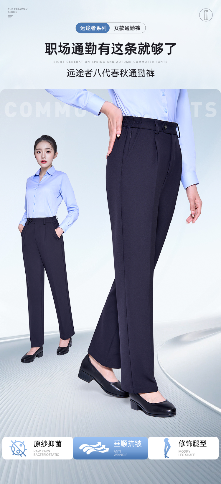 【女款八代远途者春秋通勤裤】修身商务通勤长裤高弹抗静电直筒西裤