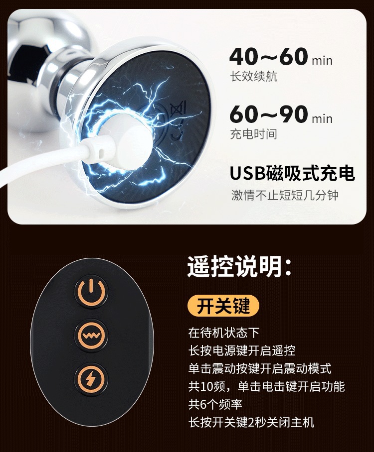 谜姬 金属电击肛塞后庭调教酥麻快感男女共用后庭成人用品
