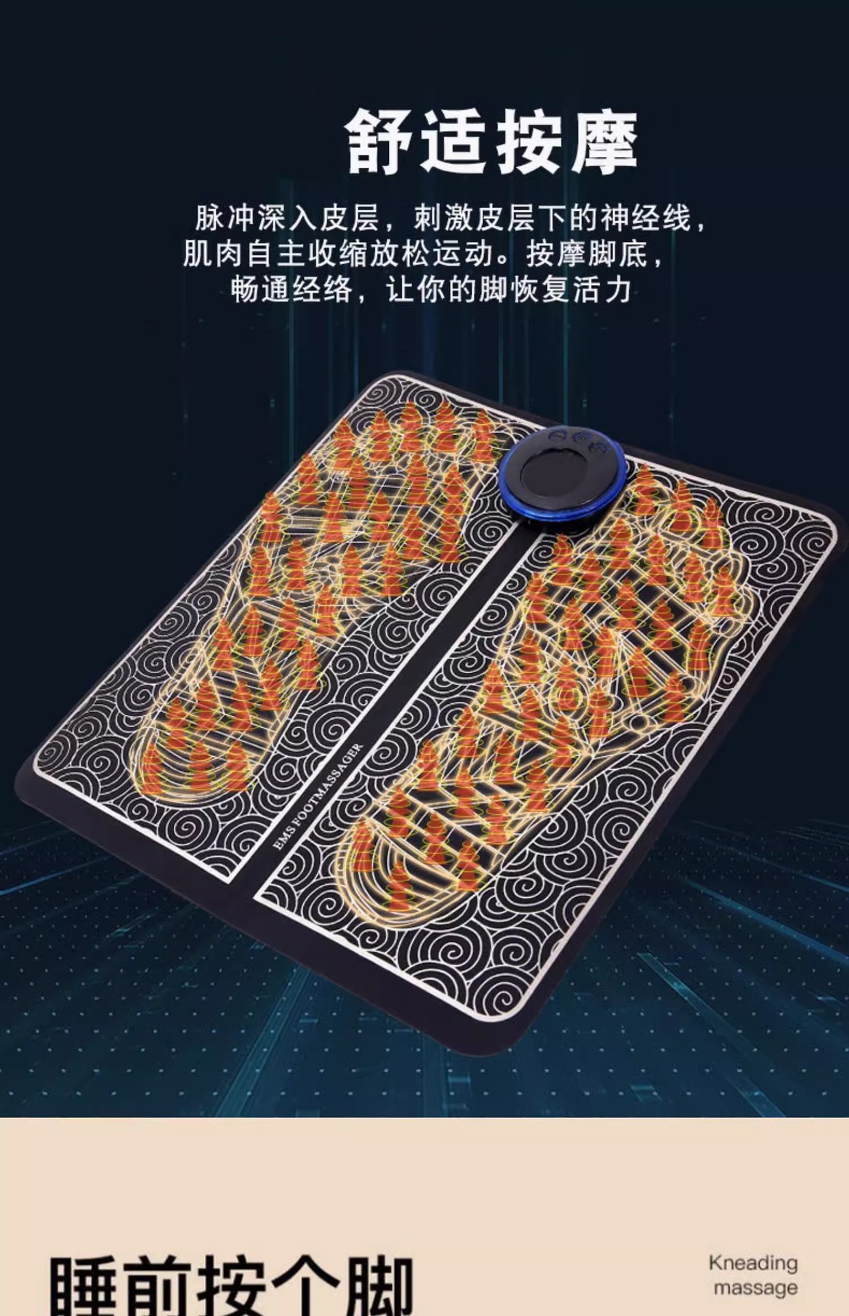 【便捷式足疗垫!您的随身御用足疗师】脉冲足底按摩器足疗机ems脚底脚部足部按摩垫全自动按脚经络神器,一键式操作设计,不用担心父母不会使用。ry