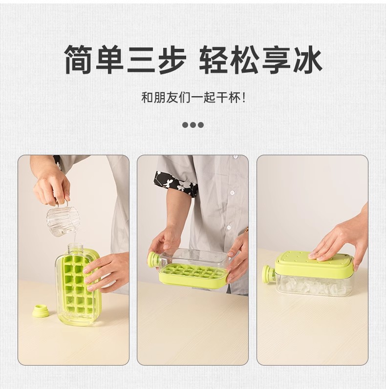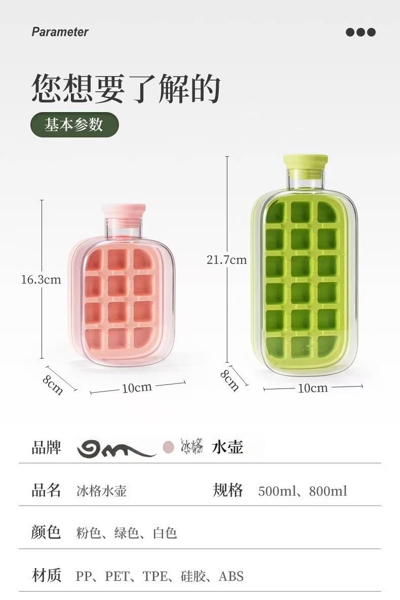 【0接触脱冰❗便携冰格水壶】冰壶冰块模具 按压式冰格水壶 水杯家用食品级制冰盒冻冰块杯神器。rh