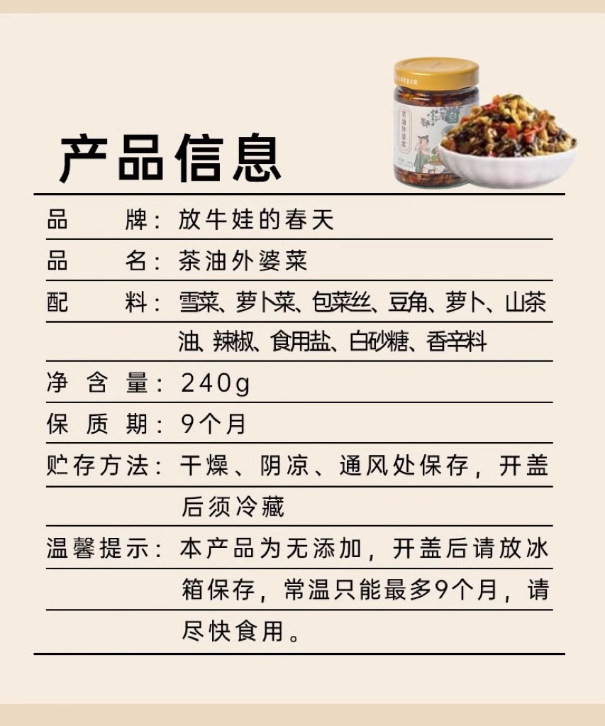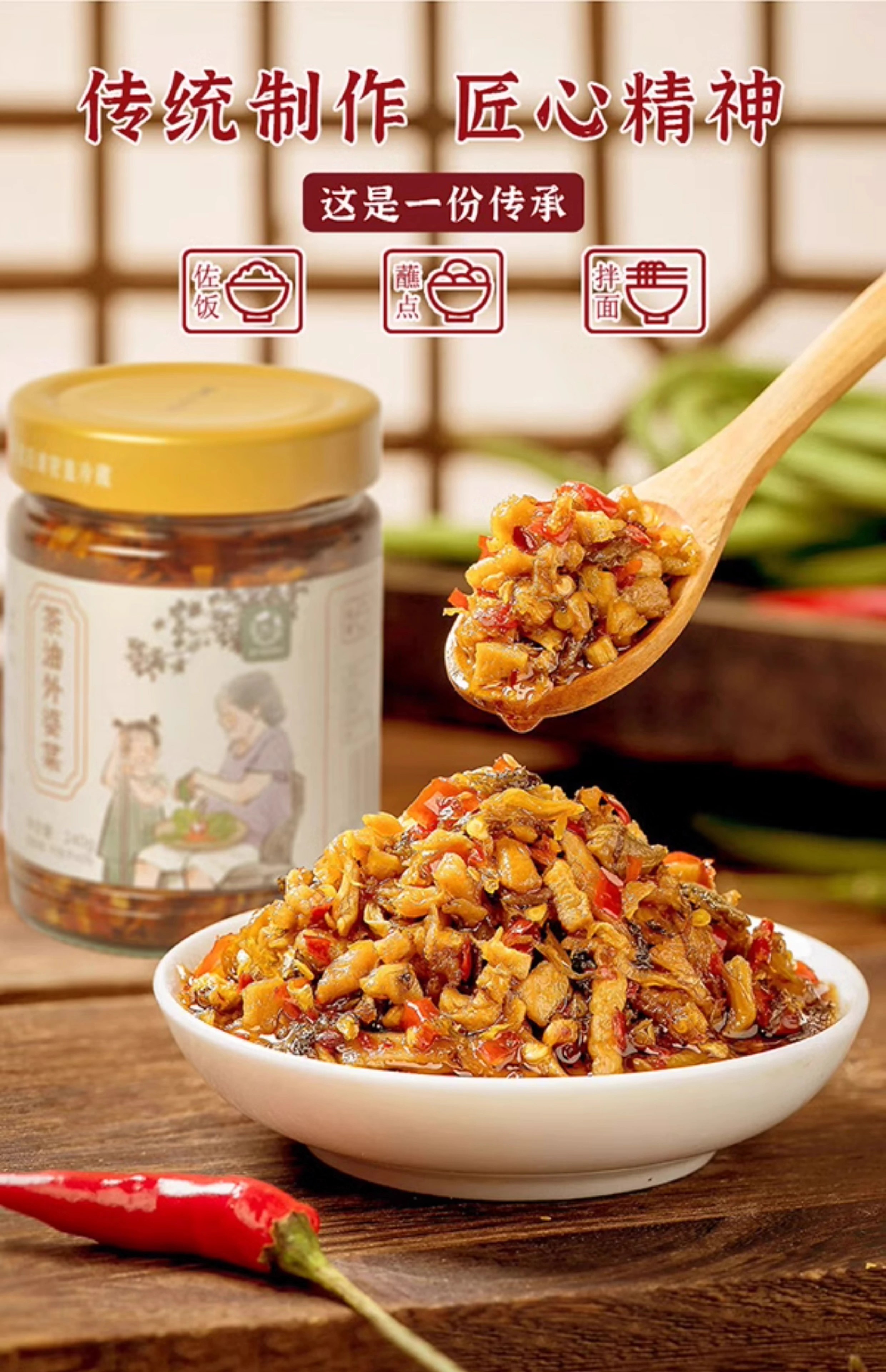 纯素食拌饭茶油外婆菜拌面佐料酱不含无蛋奶香辣湖南瓶装雪莱酱