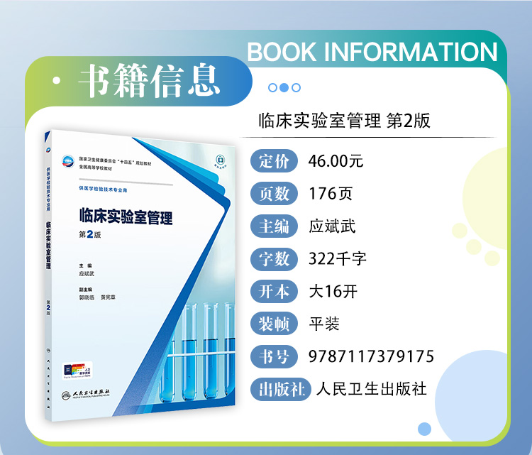 临床实验室管理 第2二版 十四五规划教材全国高等学校教材 应斌武 主编 供医学检验技术专业用 9787117379175人民卫生出版社