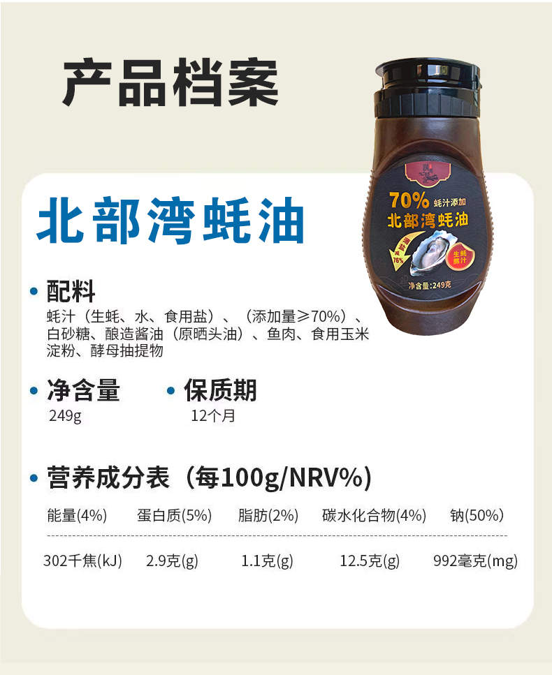广西北海北部湾耗油 生蚝熬汁 配料干净 来自大海的鲜 商品图0