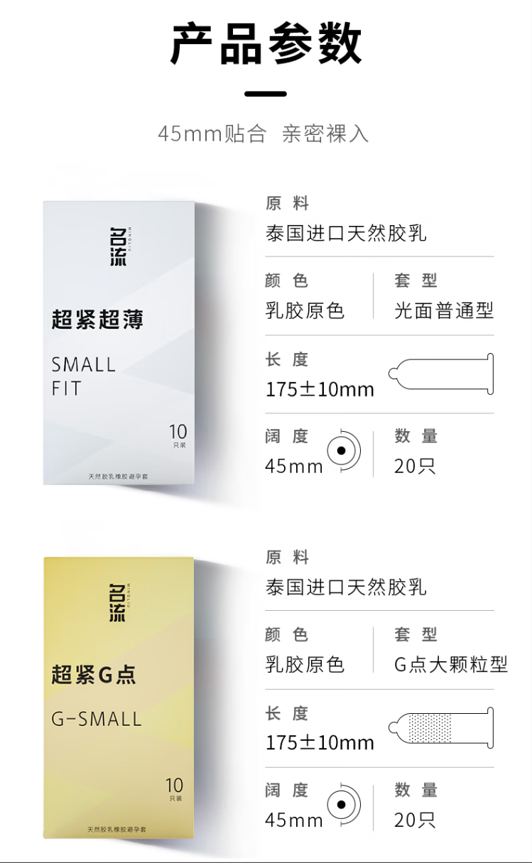 名流避孕套大颗粒+光面超薄安全套45mm成人计生套套男女超小号40只