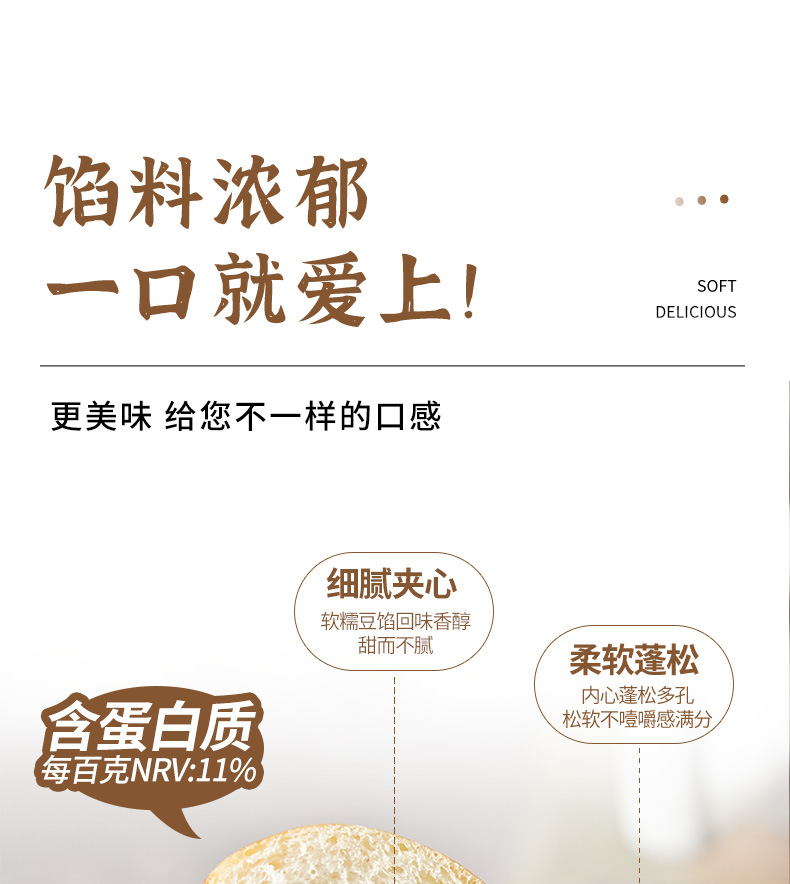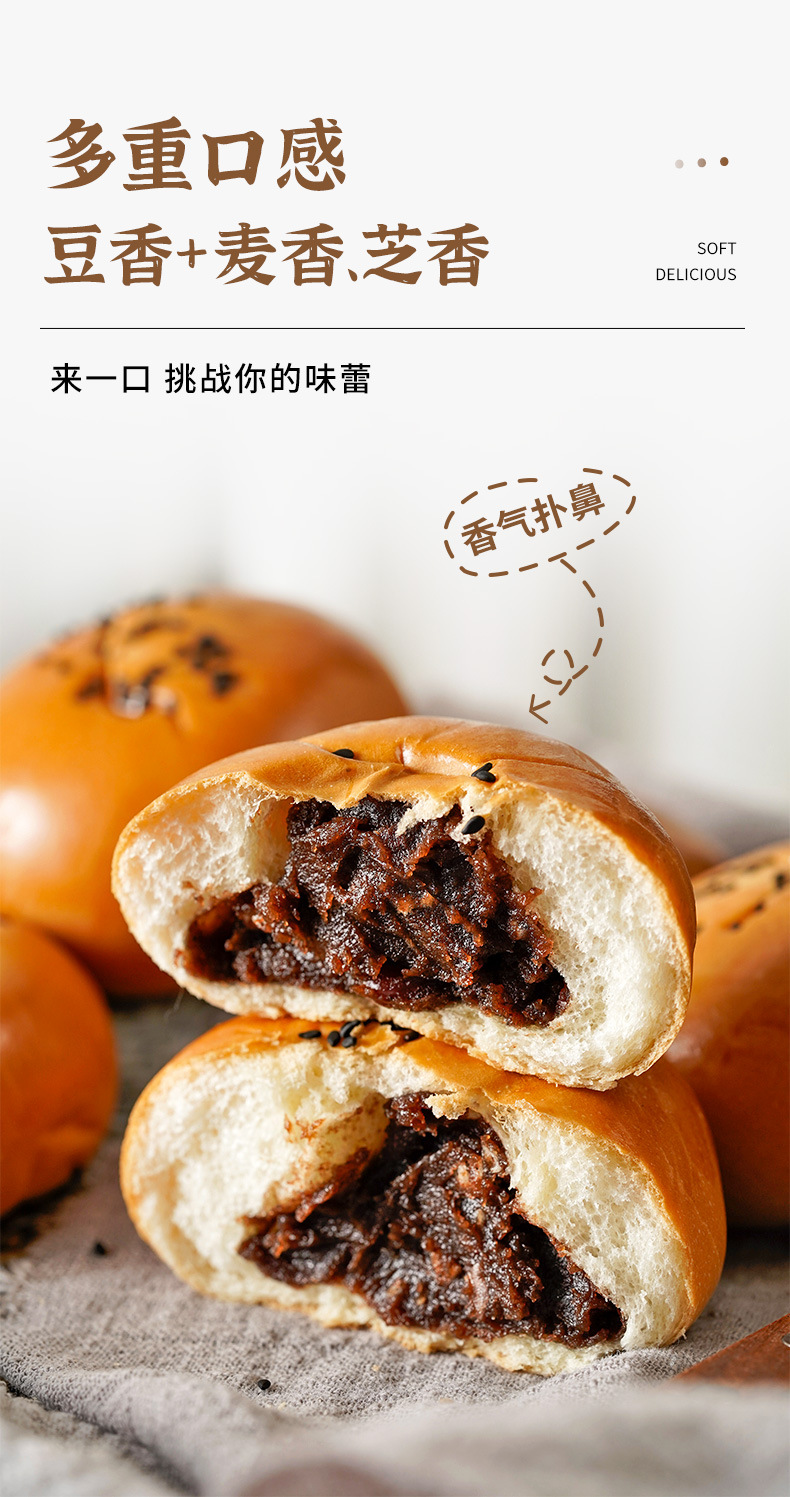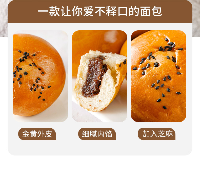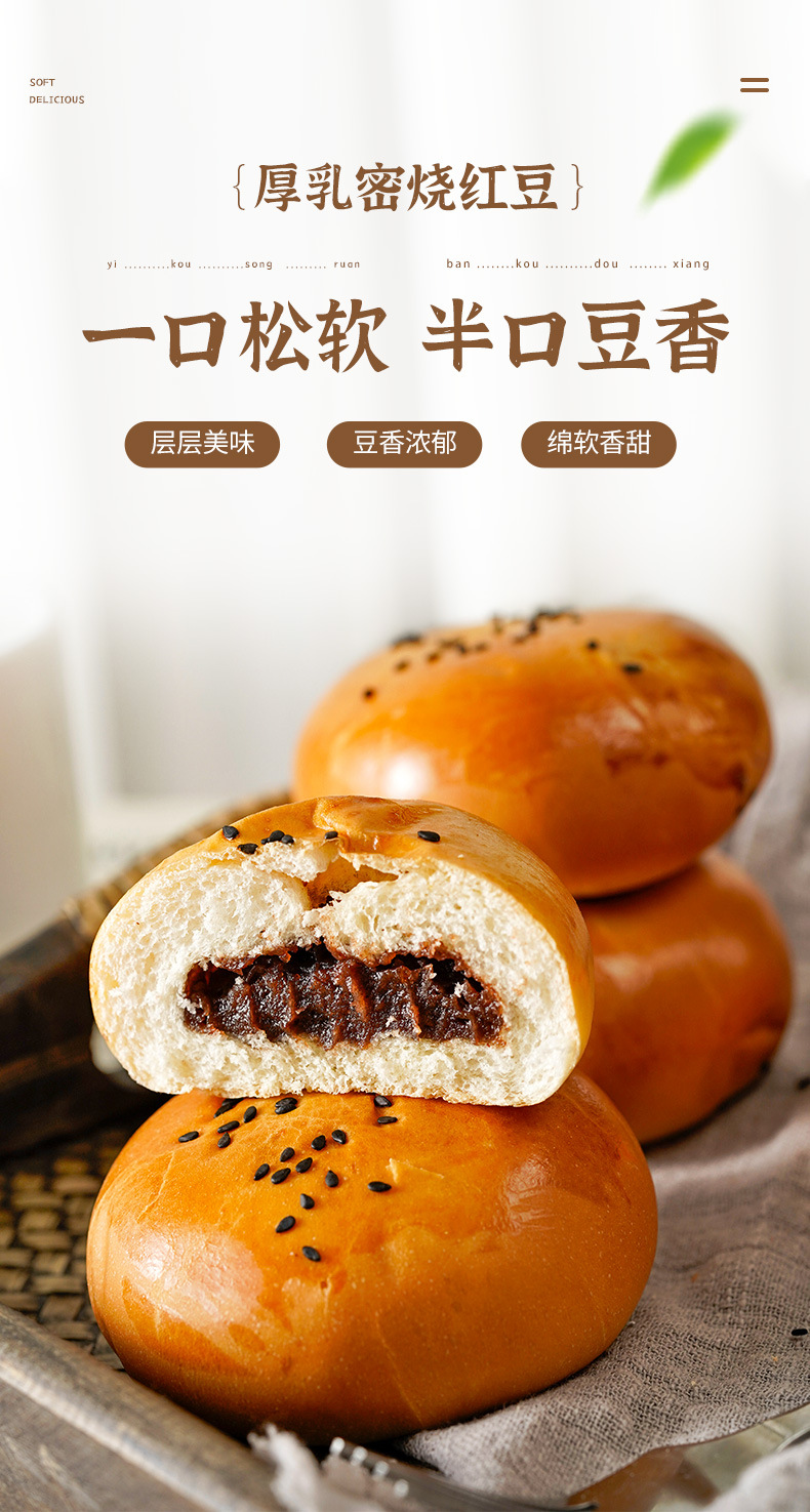 【一口松软!半口豆香】不单独添加蔗糖厚乳密烧红豆面包,细腻夹心,豆香浓郁,松软香甜,夹心早餐包代餐用零食