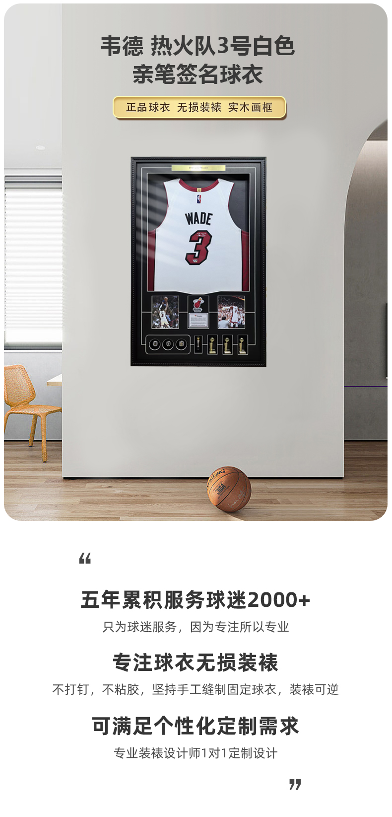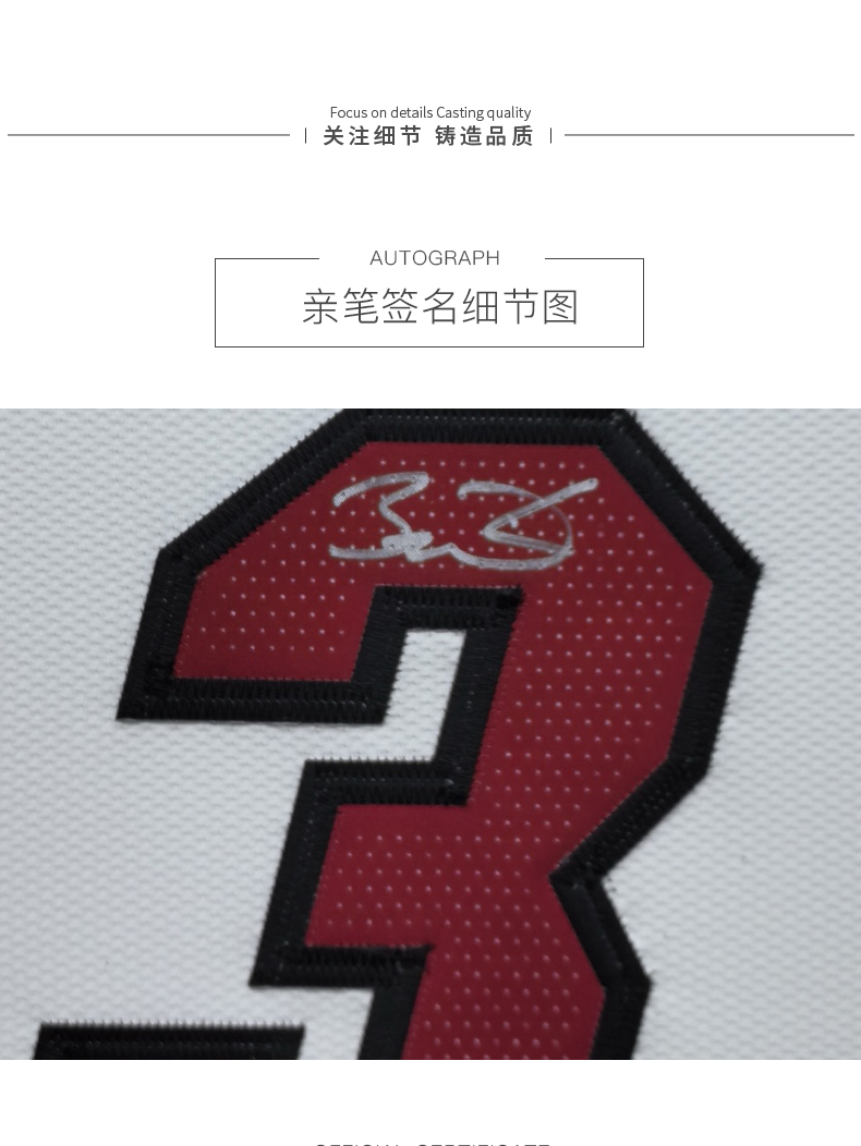 收藏系列 韦德 热火队3号白色 亲笔签名球衣