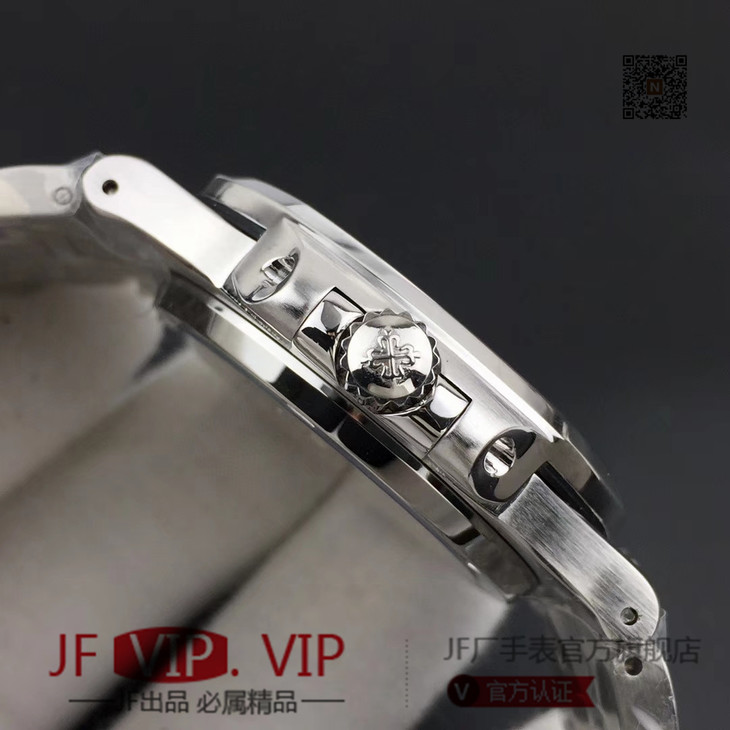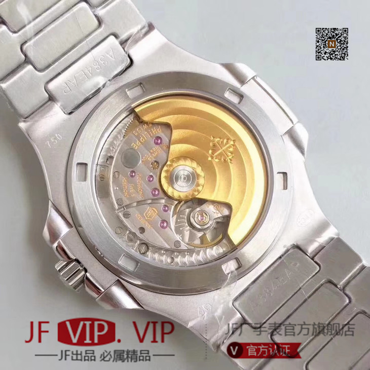 台湾镶钻工艺打造百达翡丽 鹦鹉螺满钻铂金版5719/1G-001 A级壳套,底部蚀字按正品,四个角分别是:狗头印记,750字样,天平图案