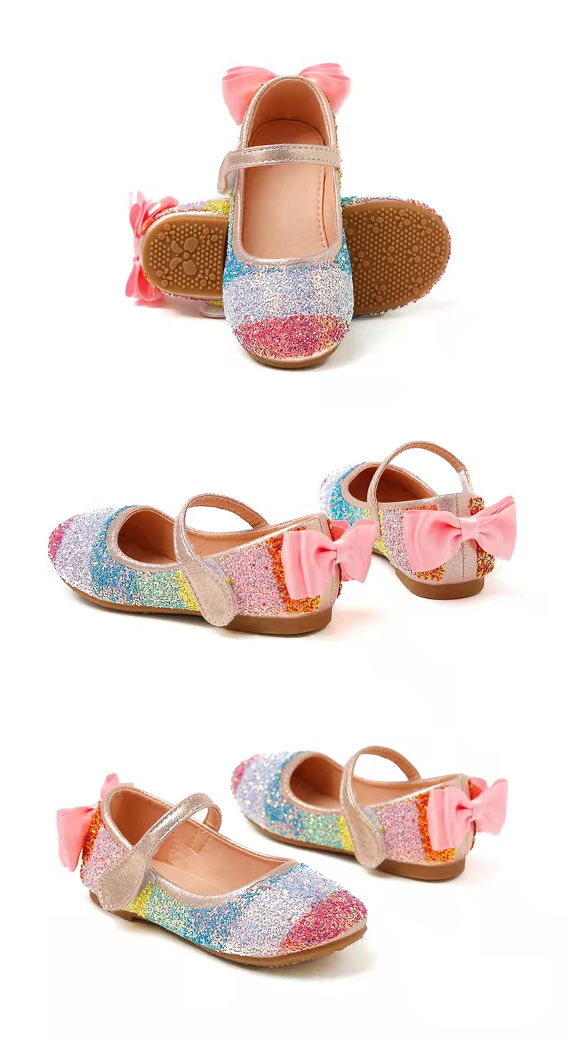 韩国进口品牌童鞋-水钻彩虹条皮鞋