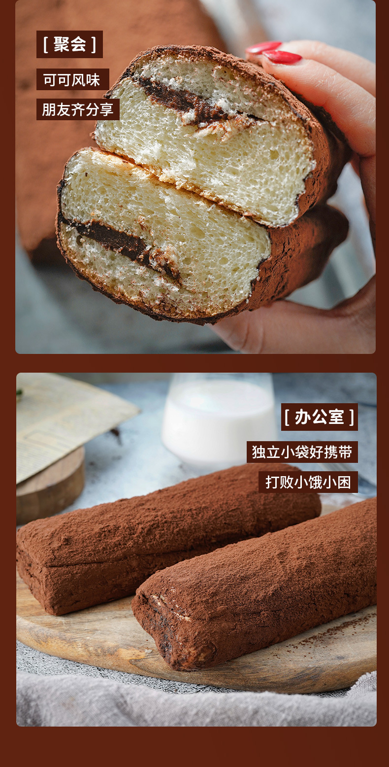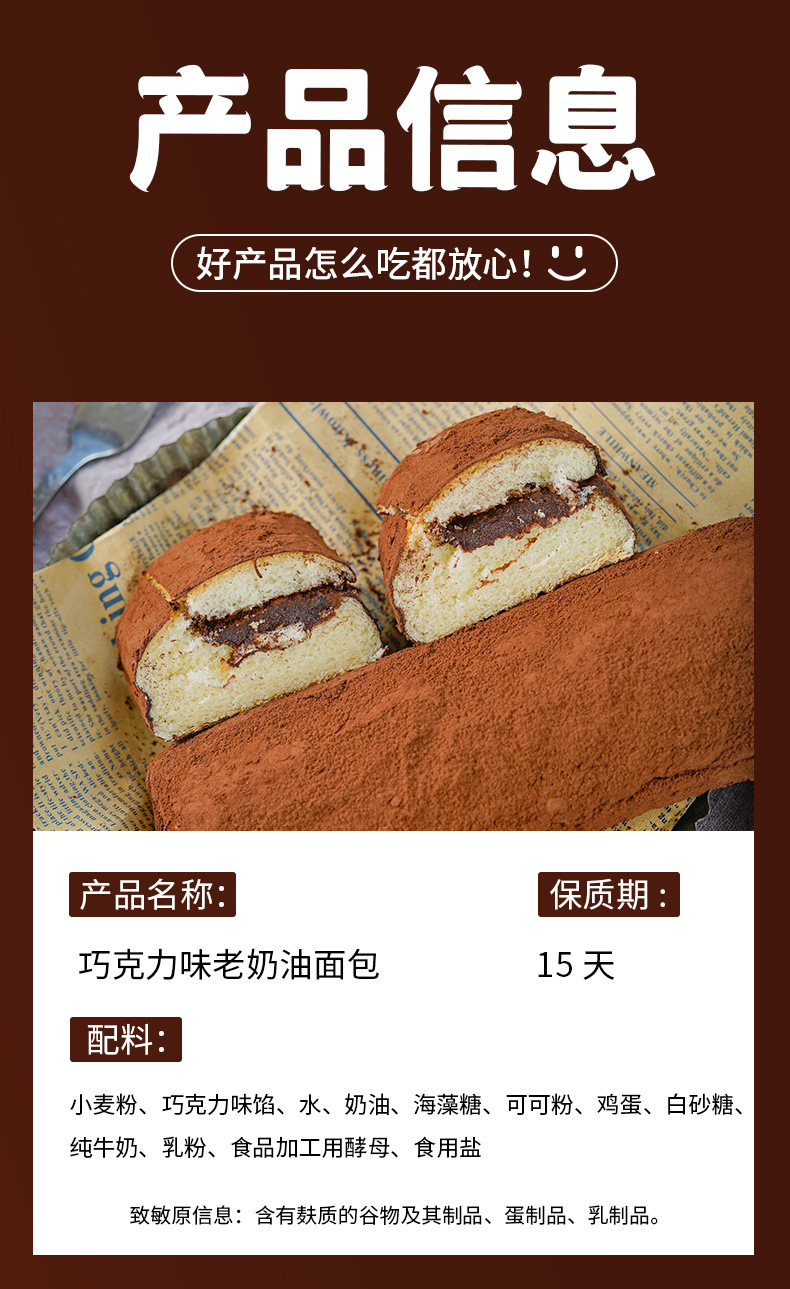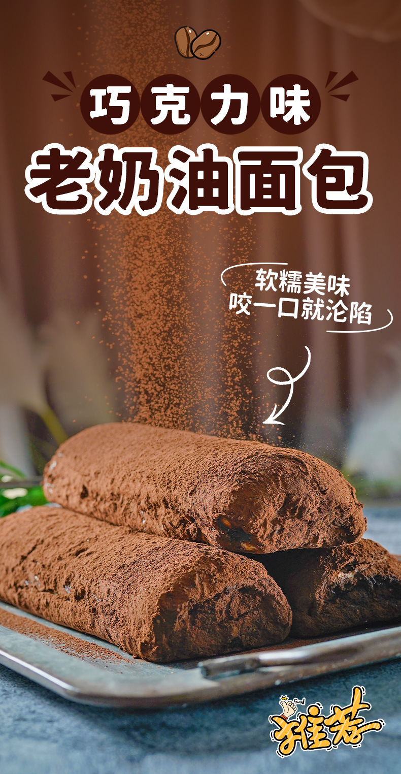 【0反式脂肪酸!巧克力味老奶油面包】添加可可粉,一口咬下,醇正可可香气蔡绕在舌尖!夹心带馅面包约100g/袋下午茶早餐零食品