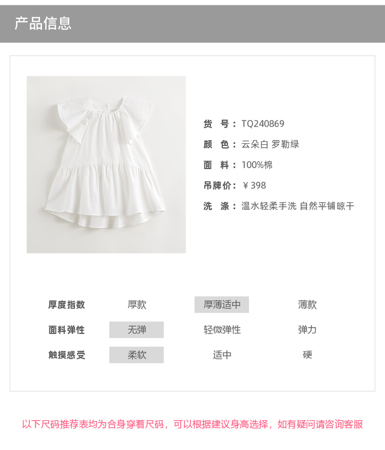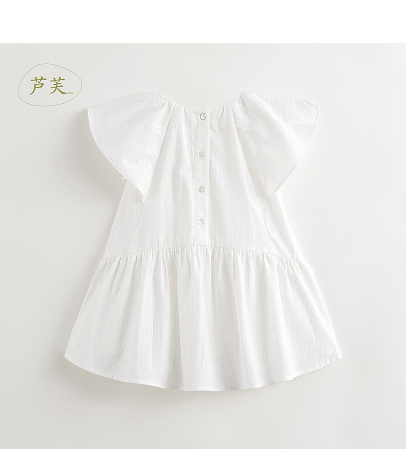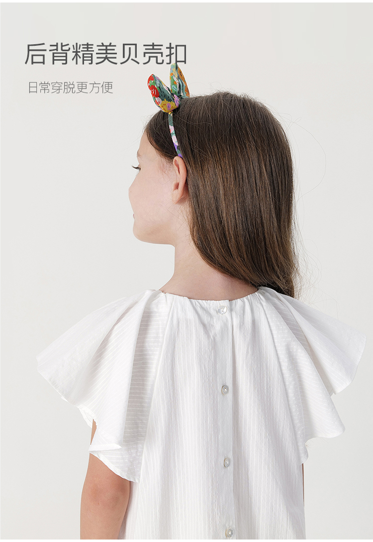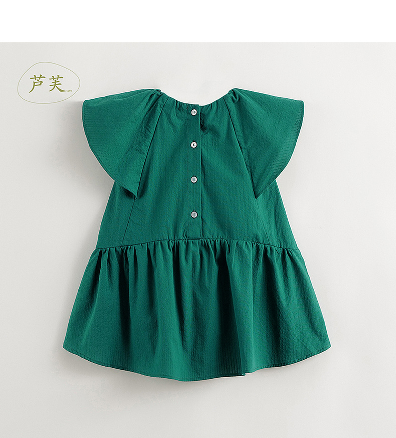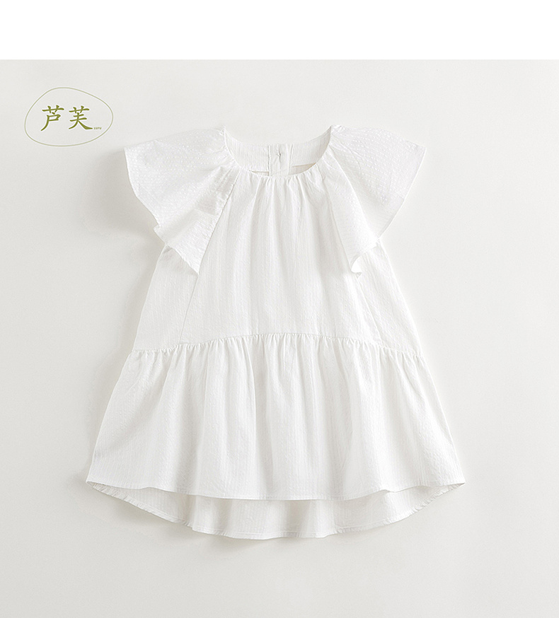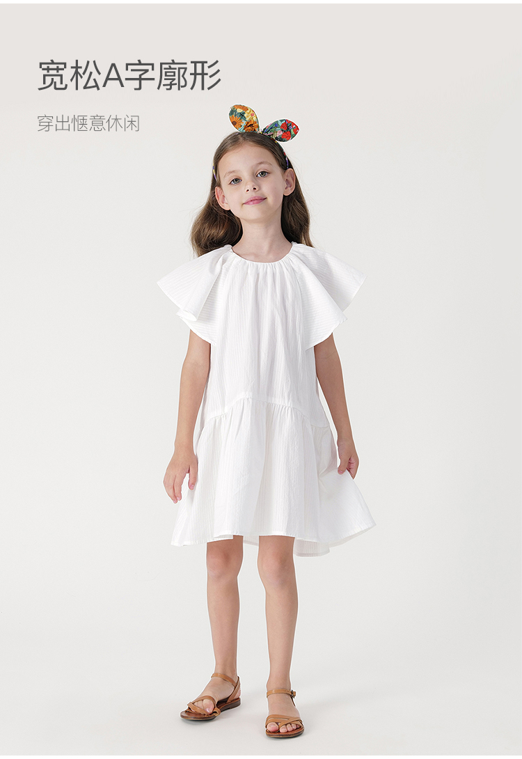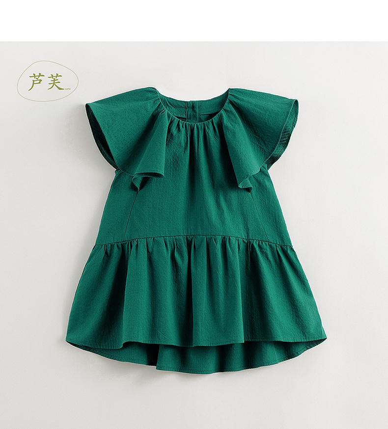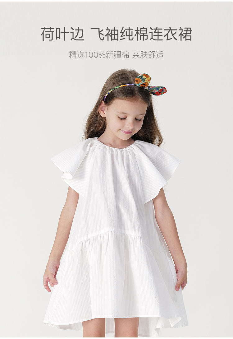 【马克珍妮 芦芙】女童荷叶边飞袖圆领连衣裙夏装新款裙子240869