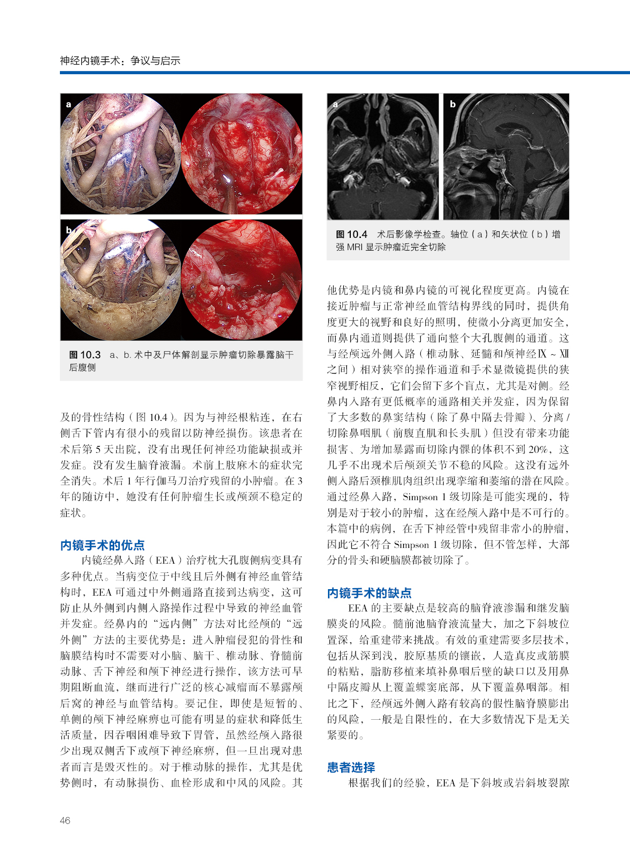 本书介绍了使用内镜提高手术效果的不同方法,鼻腔通道可以扩大以容纳内镜和手术器械,内镜所提供的强大照明和放大效果,可以更加精准地用于颅底病变手术。当切除大脑或小脑肿瘤时,所形成的腔道可以有效地用来放置神经内镜,而内镜反过来又可以显示可能在显微镜下观察不到的肿瘤残留。