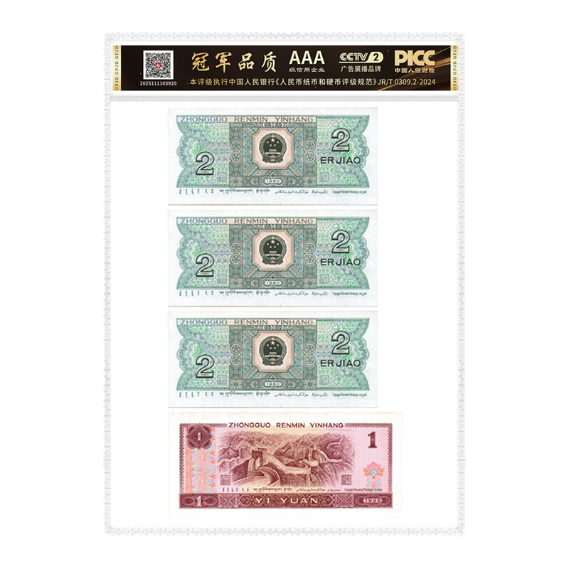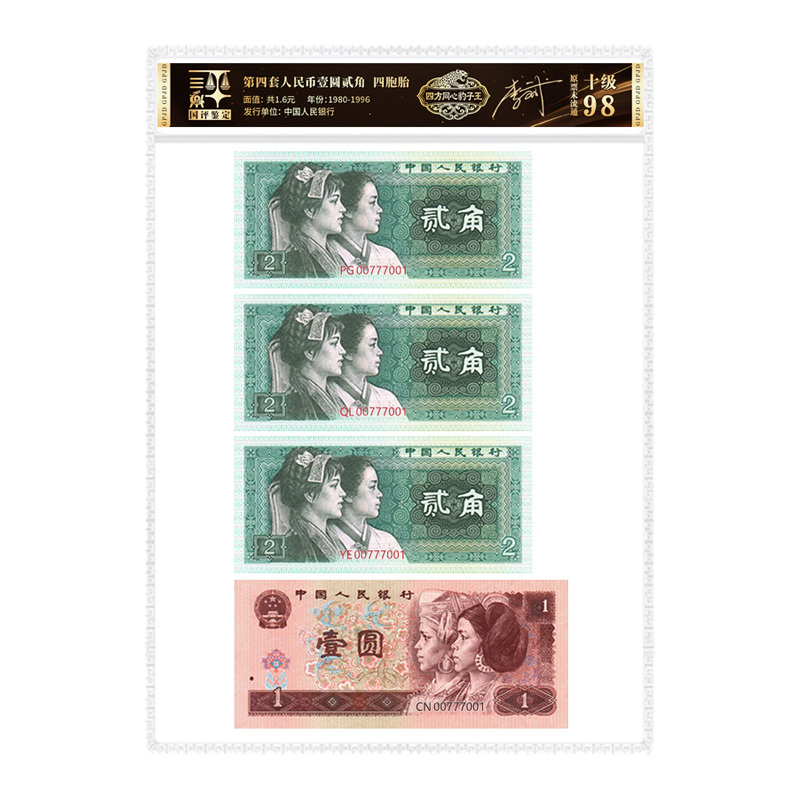 四版一元二角退市钞四胞胎豹子身李斌老师品鉴签名原票十级未流通
