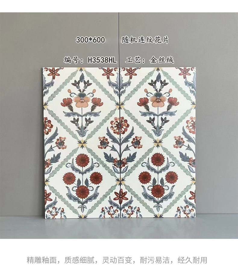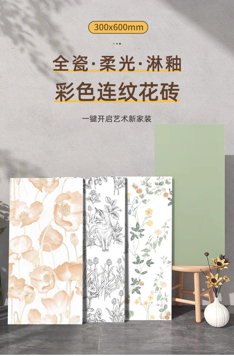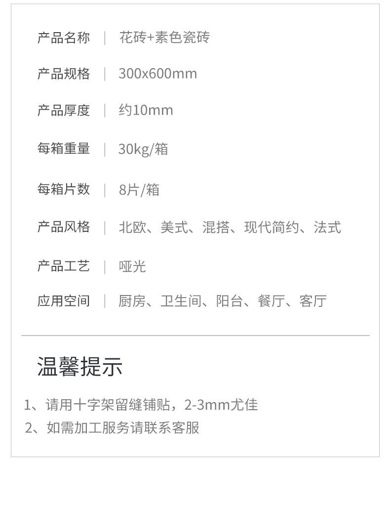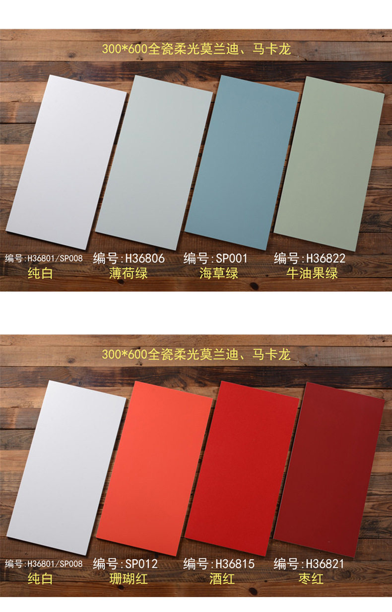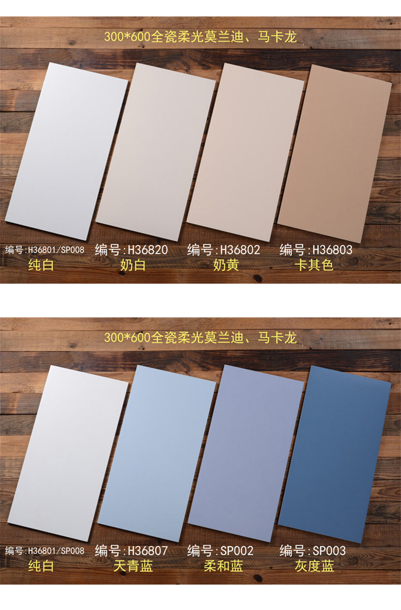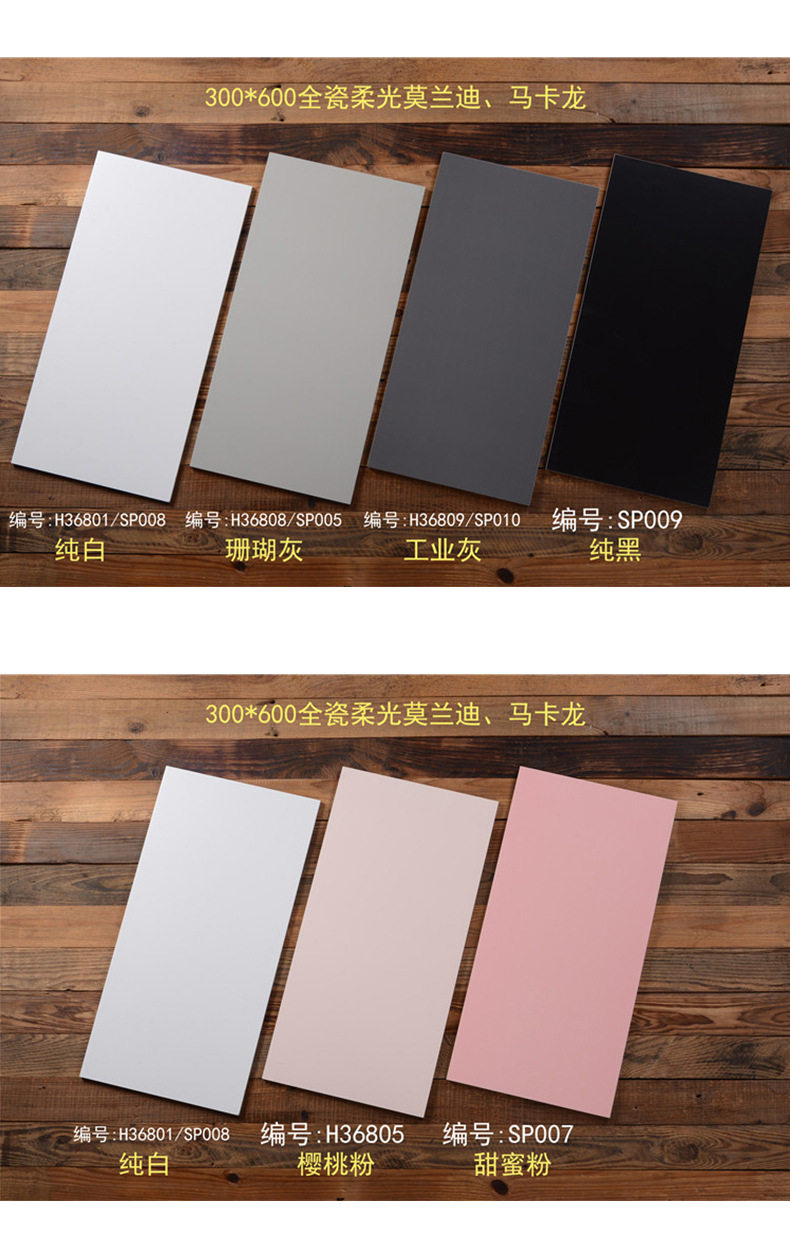 微300x600全瓷地砖阳台法式柔光厨卫花砖水泥莫兰迪素色墙砖连纹
