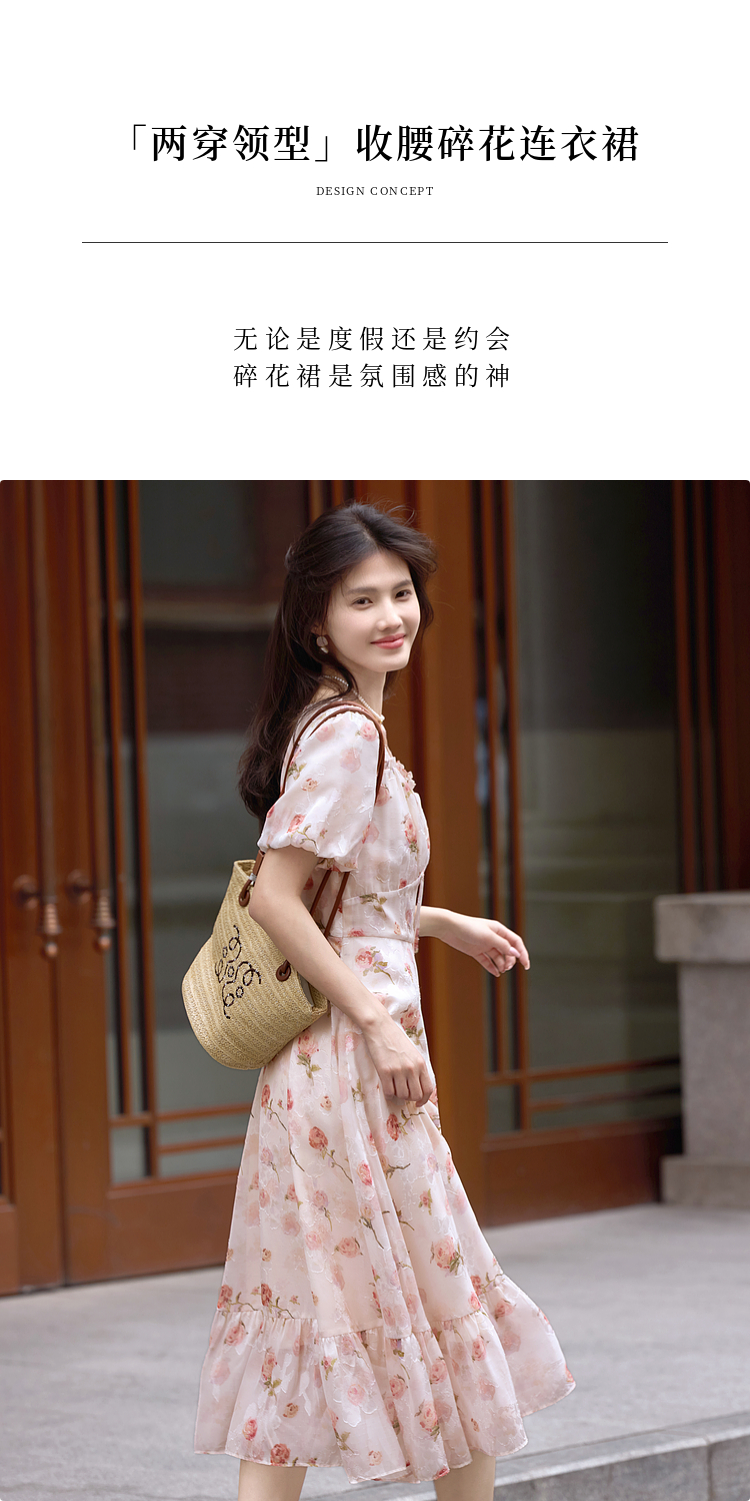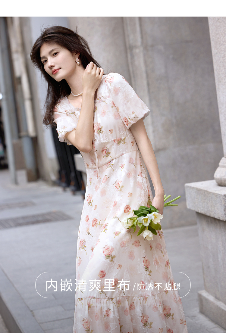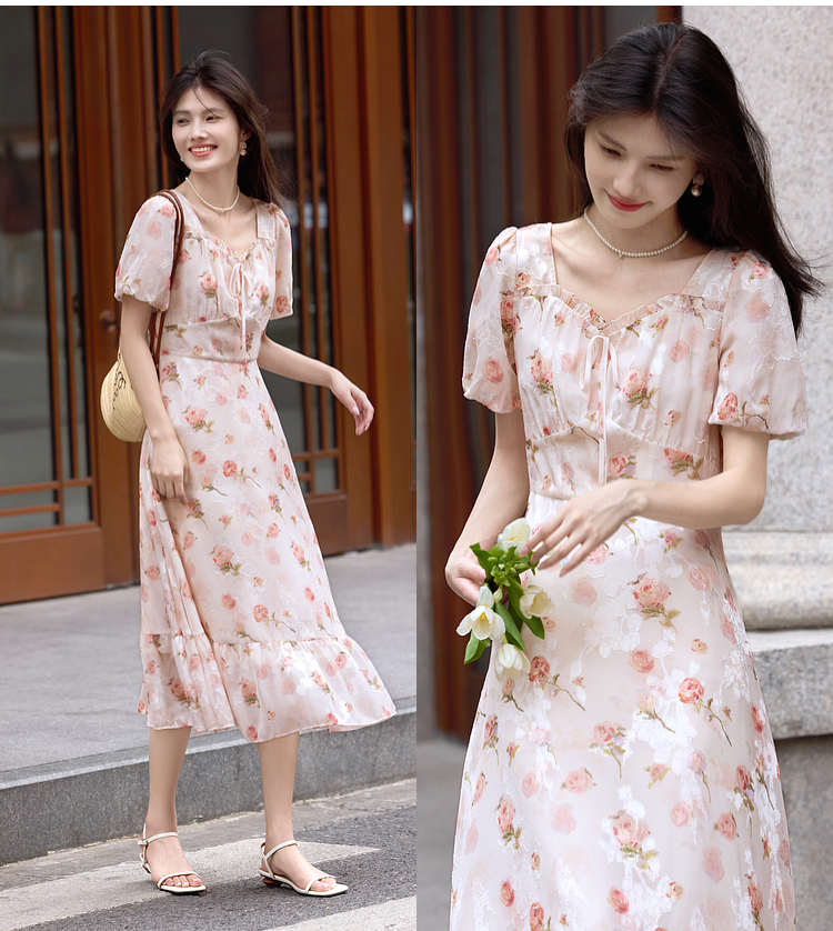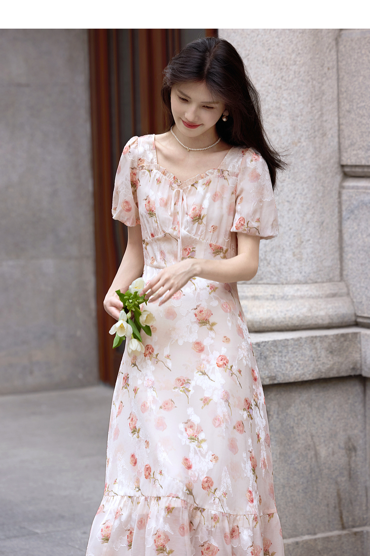 熙世界浪漫玫瑰碎花连衣裙女2025夏季新款法式度假气质荷叶边裙子