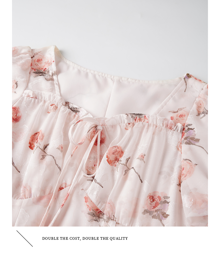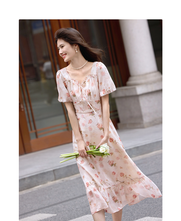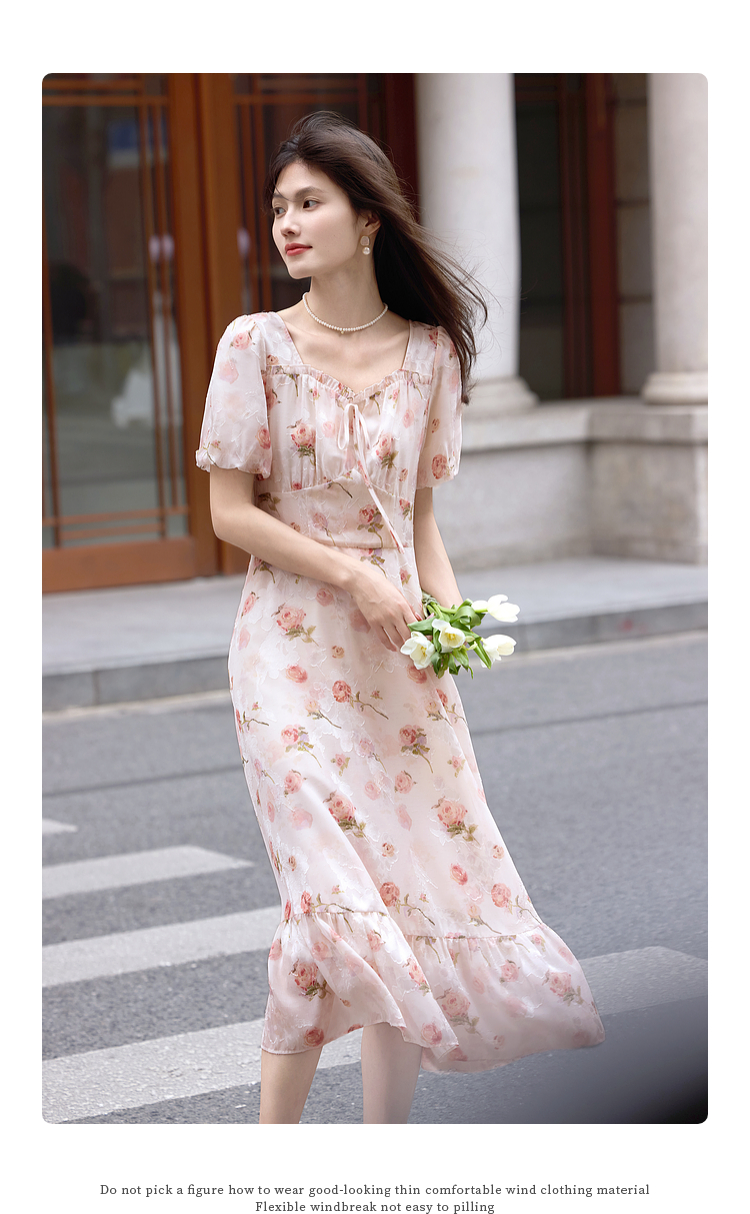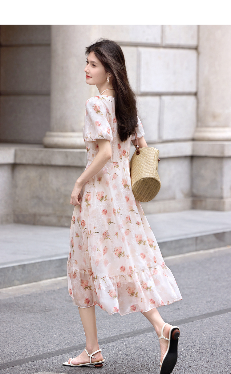 熙世界浪漫玫瑰碎花连衣裙女2025夏季新款法式度假气质荷叶边裙子