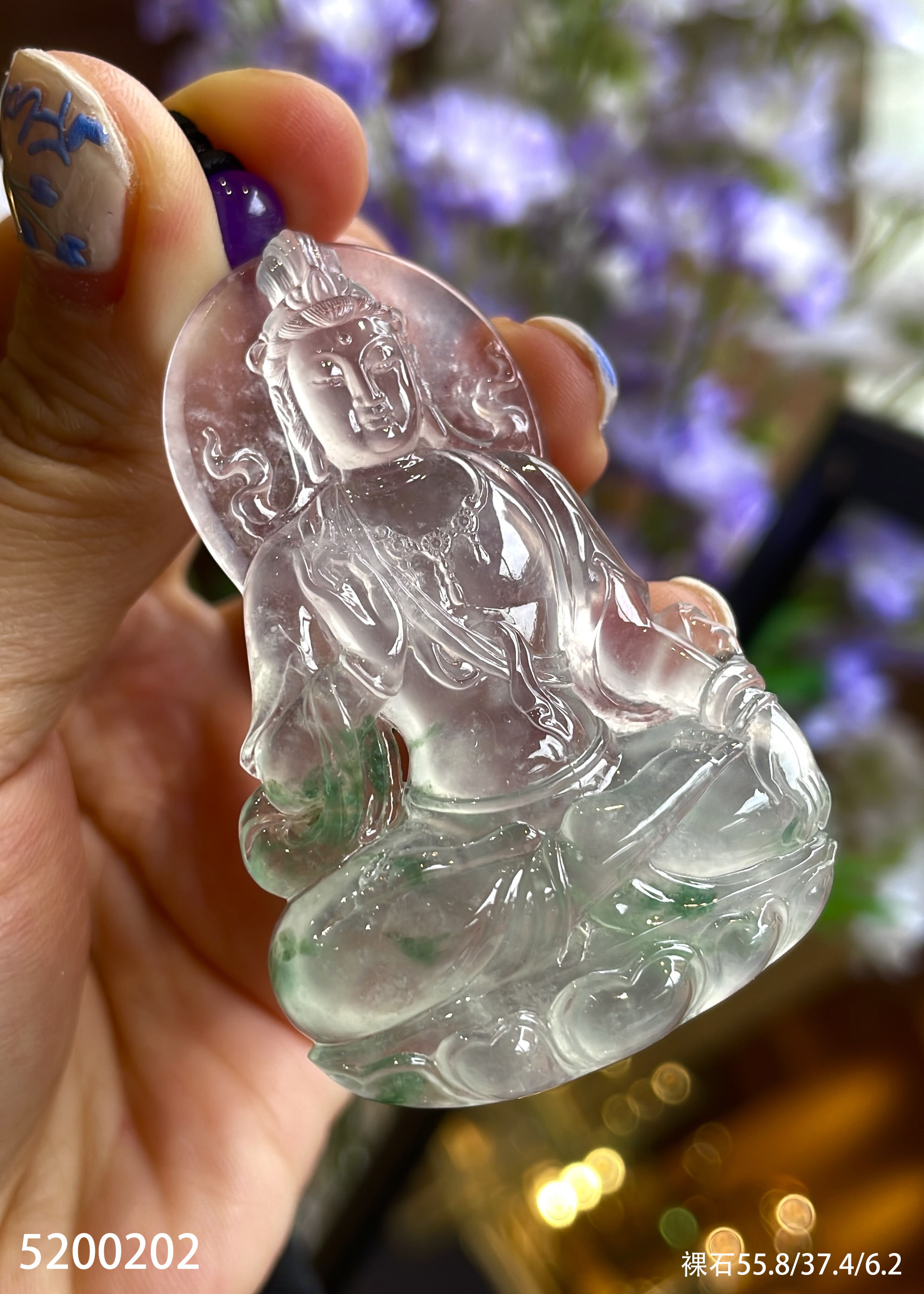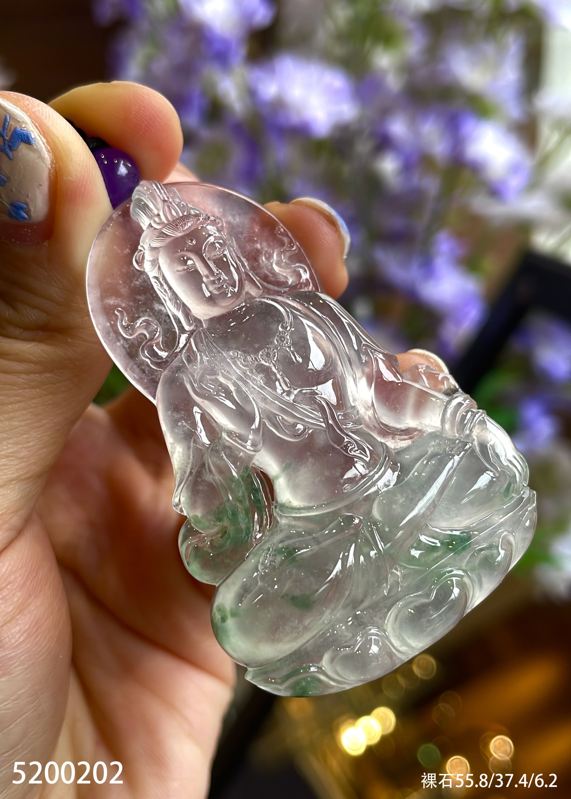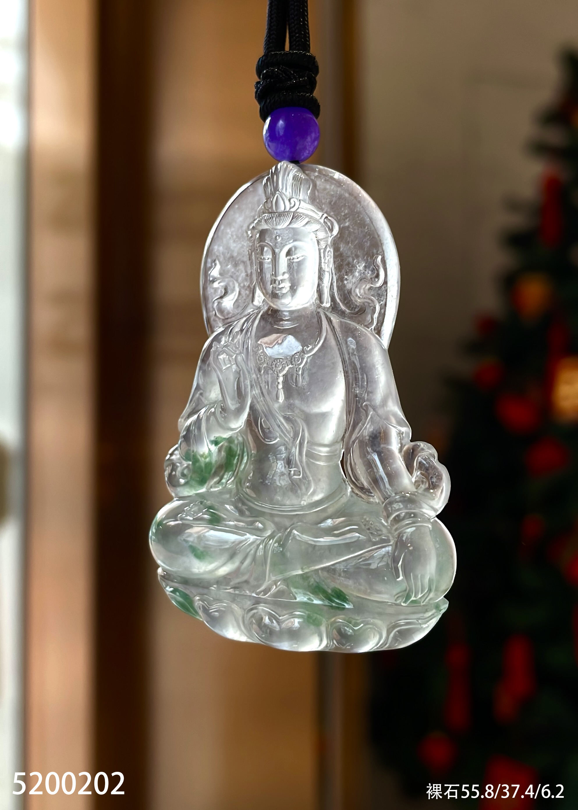 玻璃种飘花观音吊坠【5200202】具体价格微信咨询