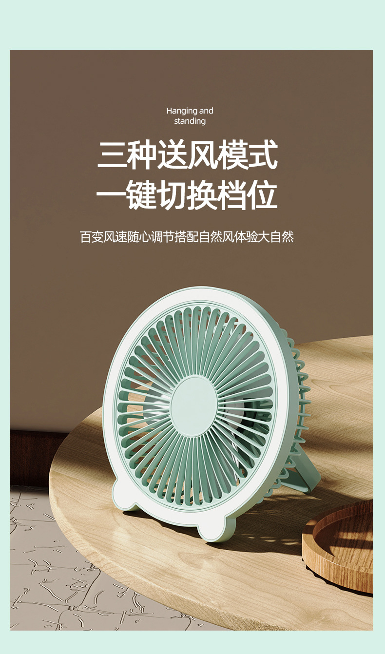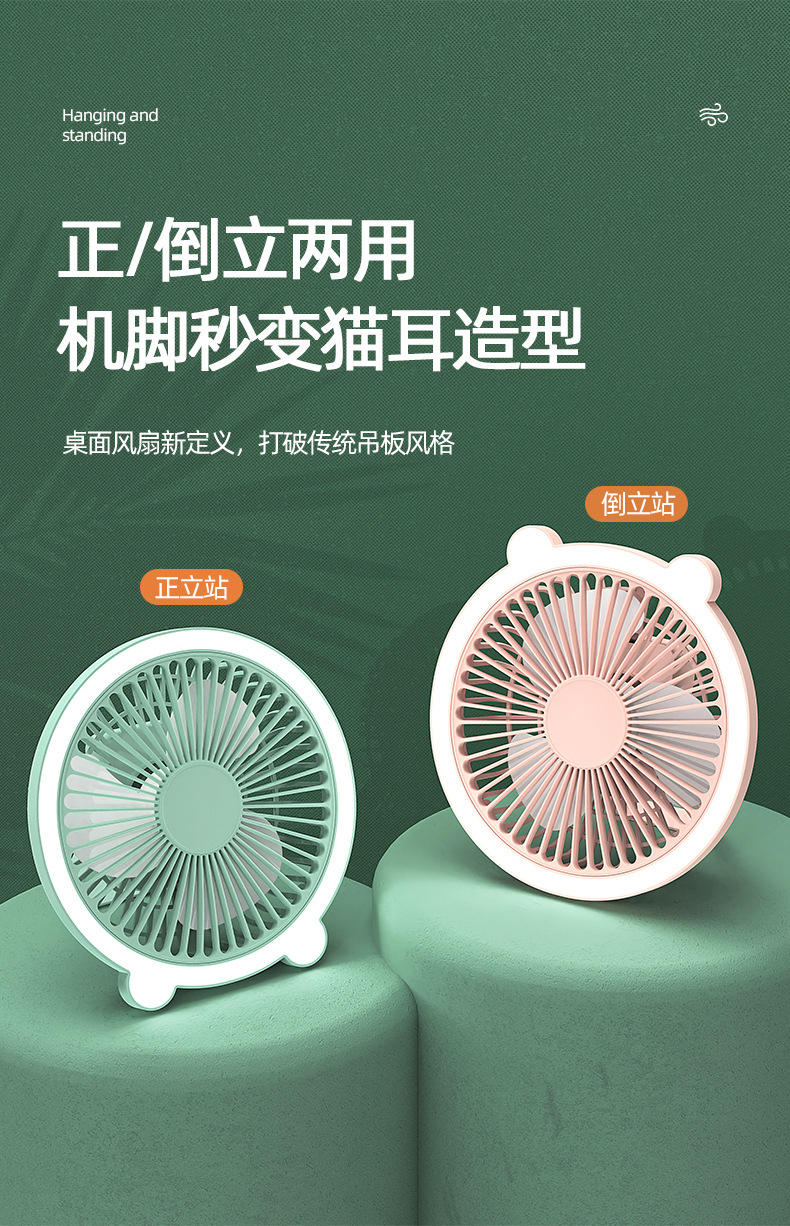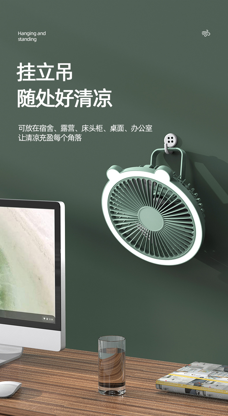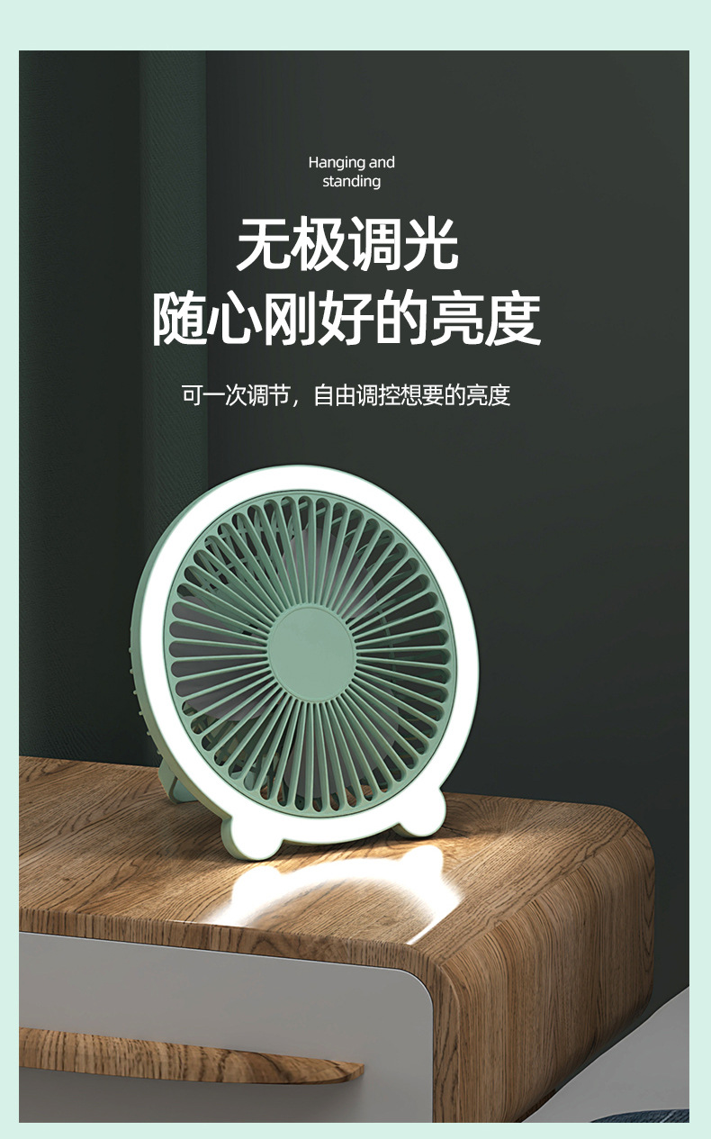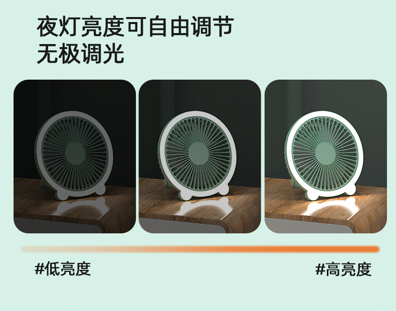 夹式小风扇学生宿舍床上夜灯夹扇办公室桌面usb充电夹子灯光跨境