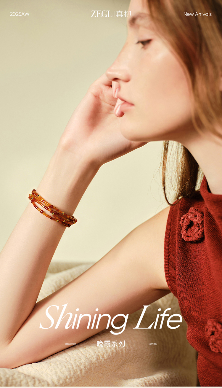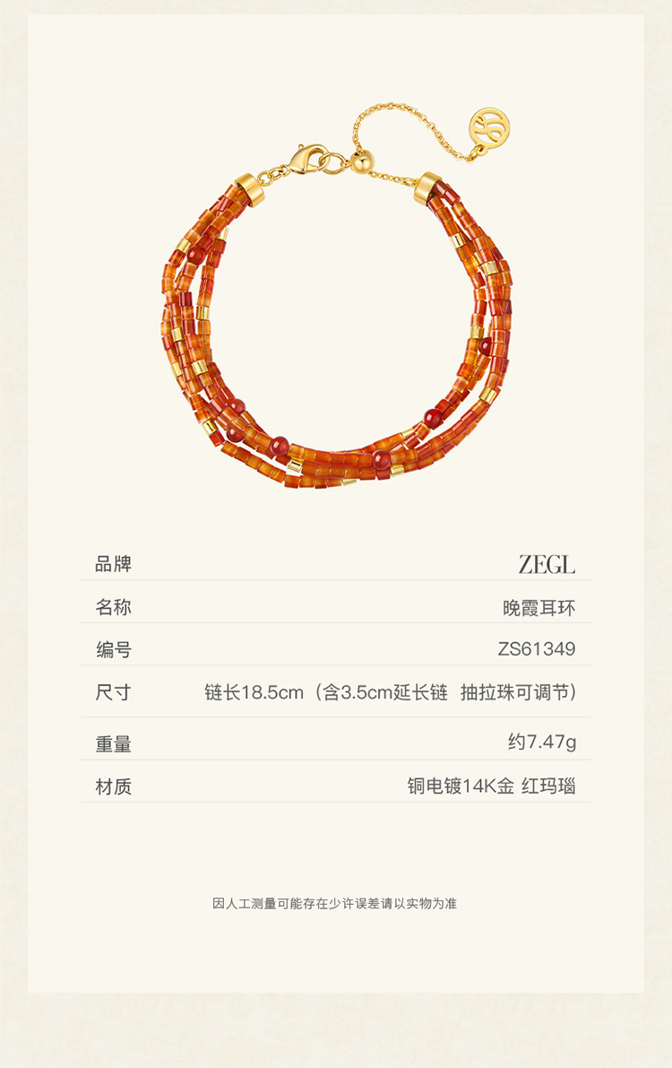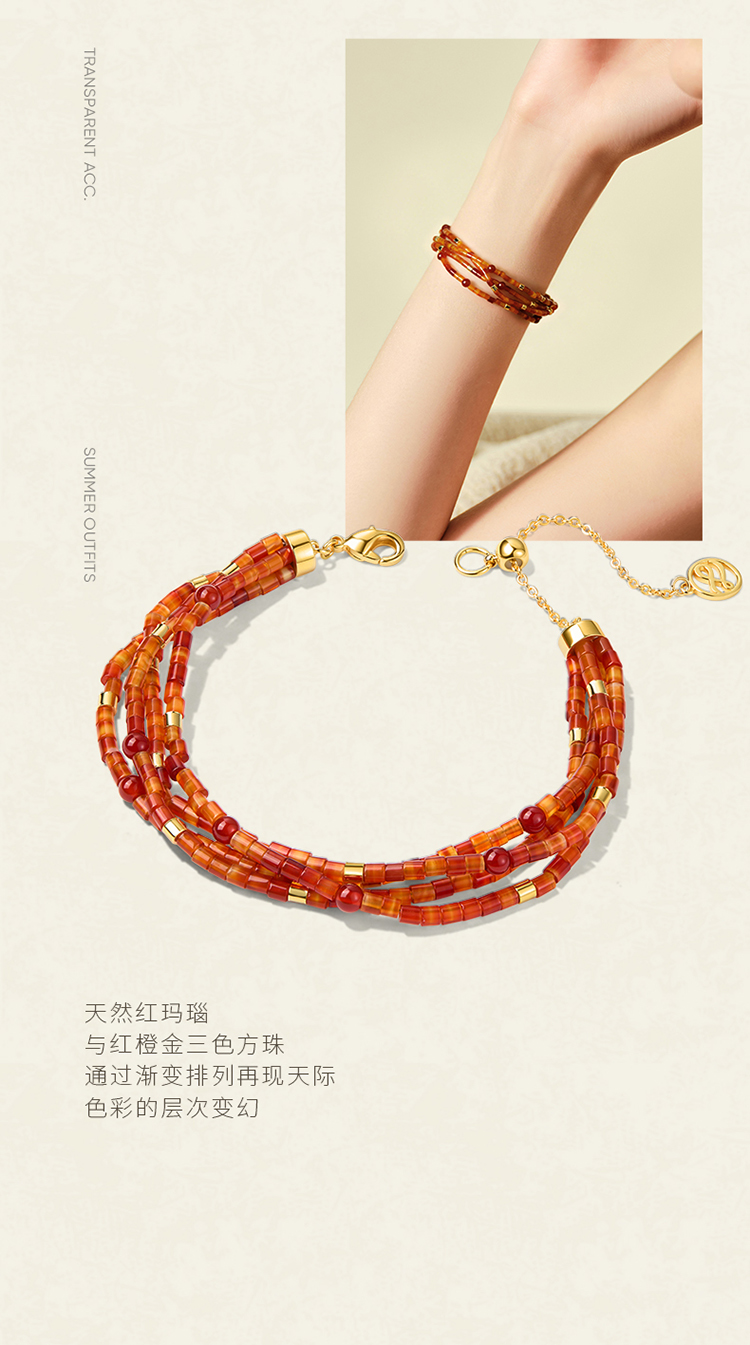 ZEGL晚霞系列天然红玛瑙手链高级轻奢小众手串女红色新年秋冬手饰