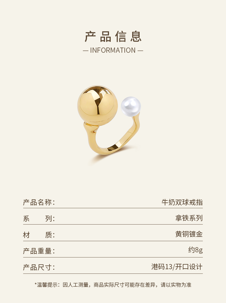 【刘孜同款】Lagomist拿铁系列 | 金/银牛奶双球戒指
