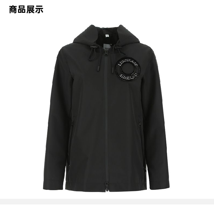 BURBERRY 博柏利 女士徽标印花连帽外套 黑色 8048050 A1189