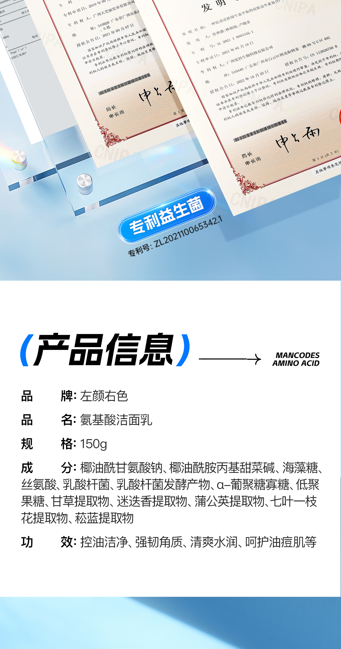 💥买即送‼冰川水💥秒杀‼【到手¥29.9/瓶】左颜右色氨基酸洁面乳150g