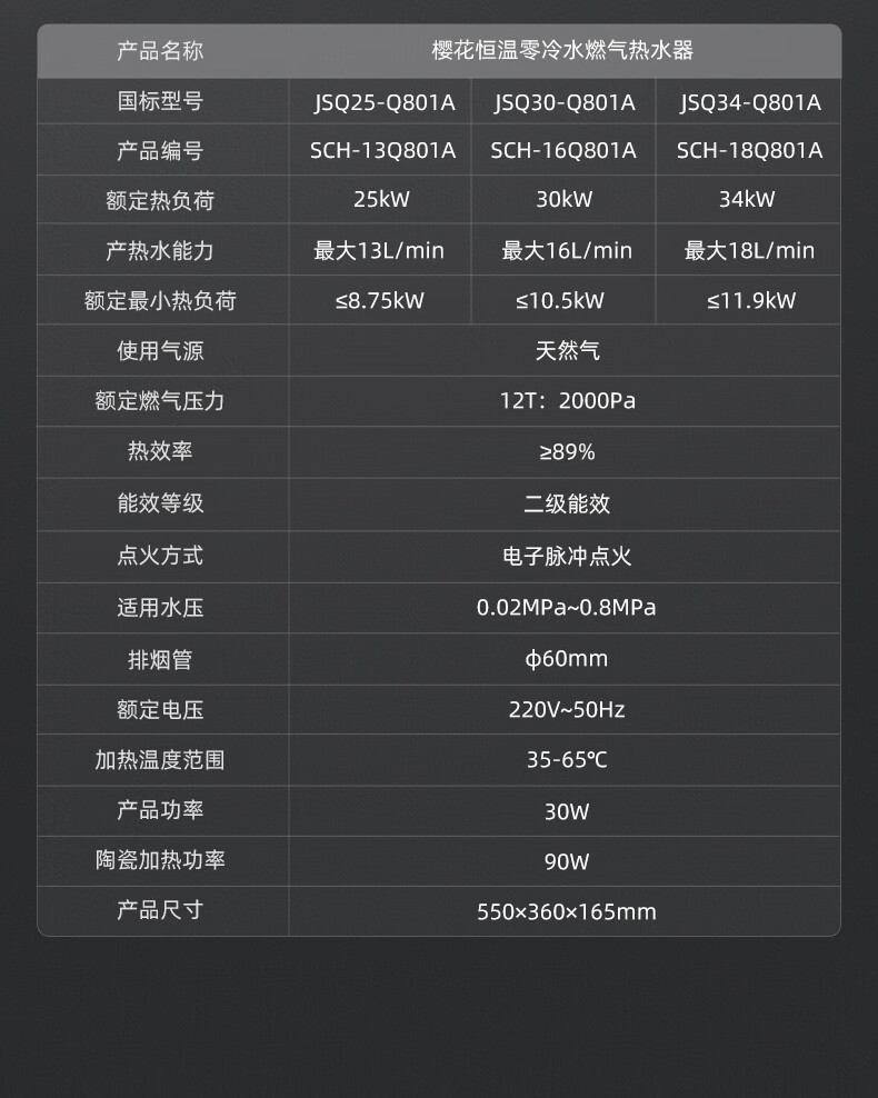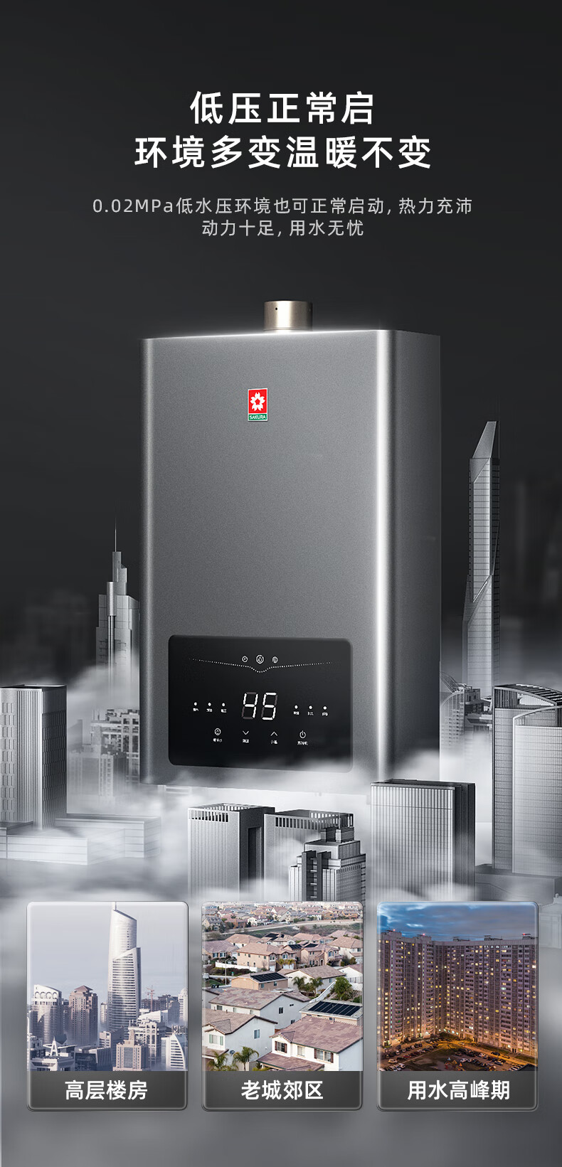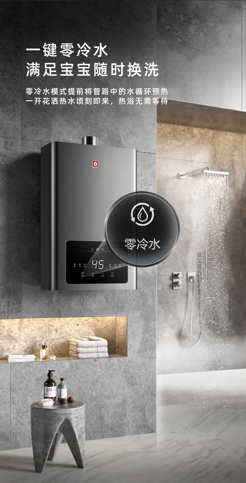 樱花燃气热水器 零冷水 智能触控 精控恒温 四段燃烧 多重防护系统 防干烧 SCH-16Q801A 天然气