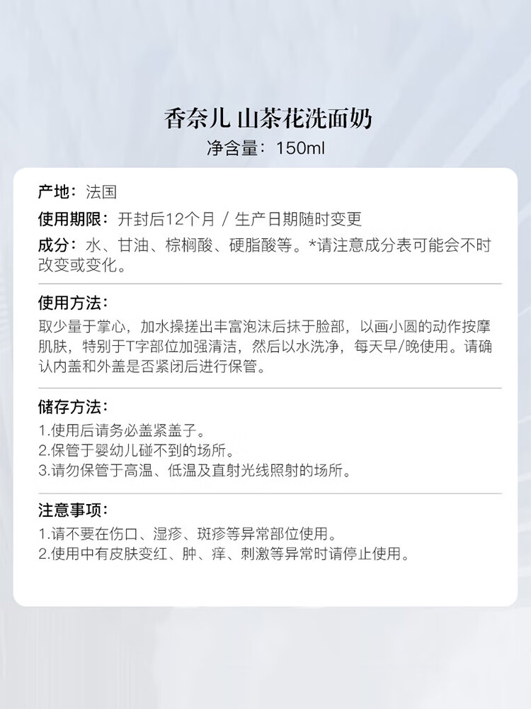 香奈儿山茶花泡沫保湿洁面乳 150ml