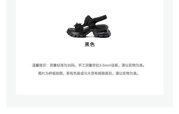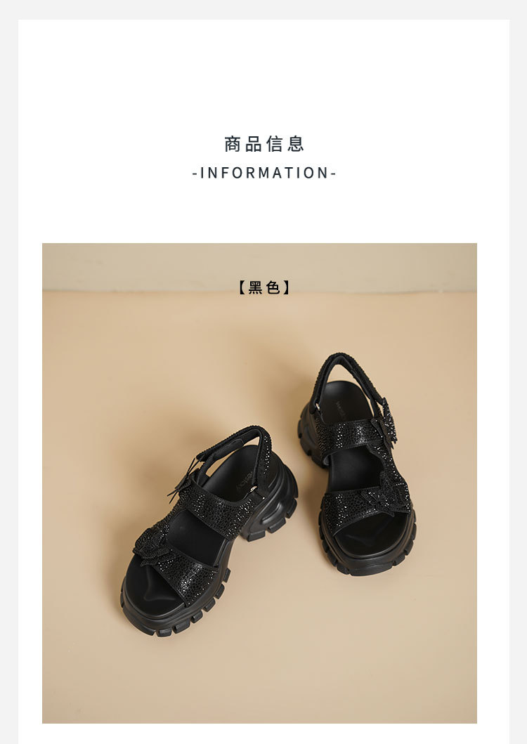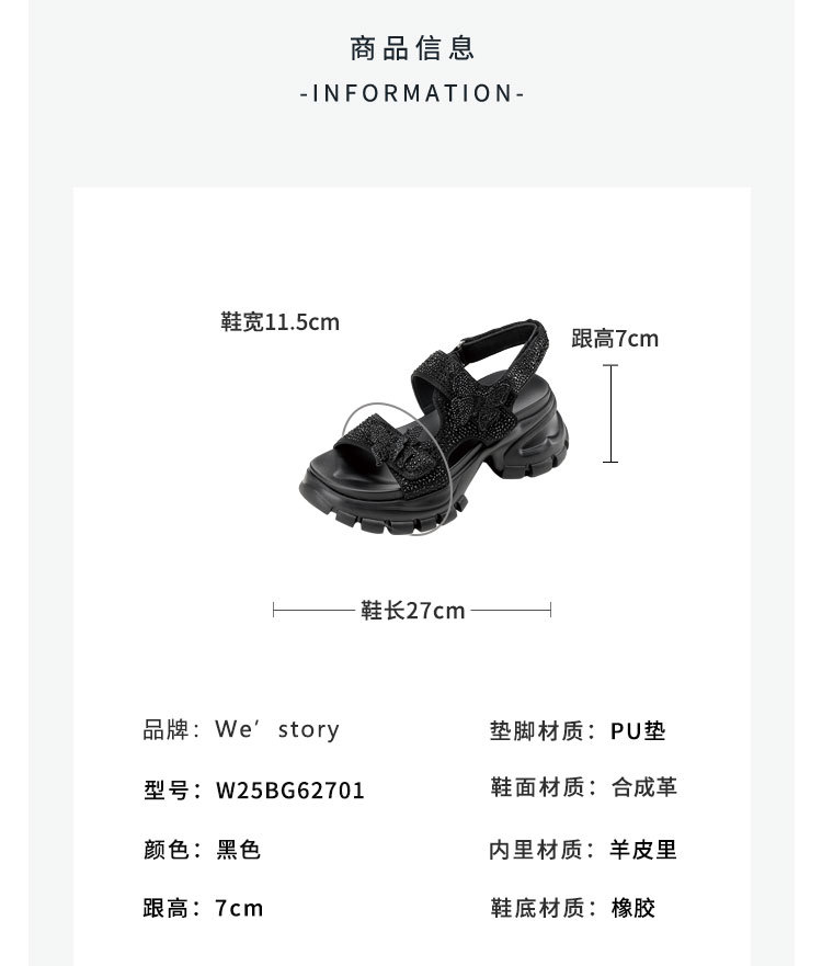 Westory2025年夏季厚底轻量凉鞋全黑“夜精灵”可酷亦可秒变气质赫本魔术贴凉鞋W25BG62701