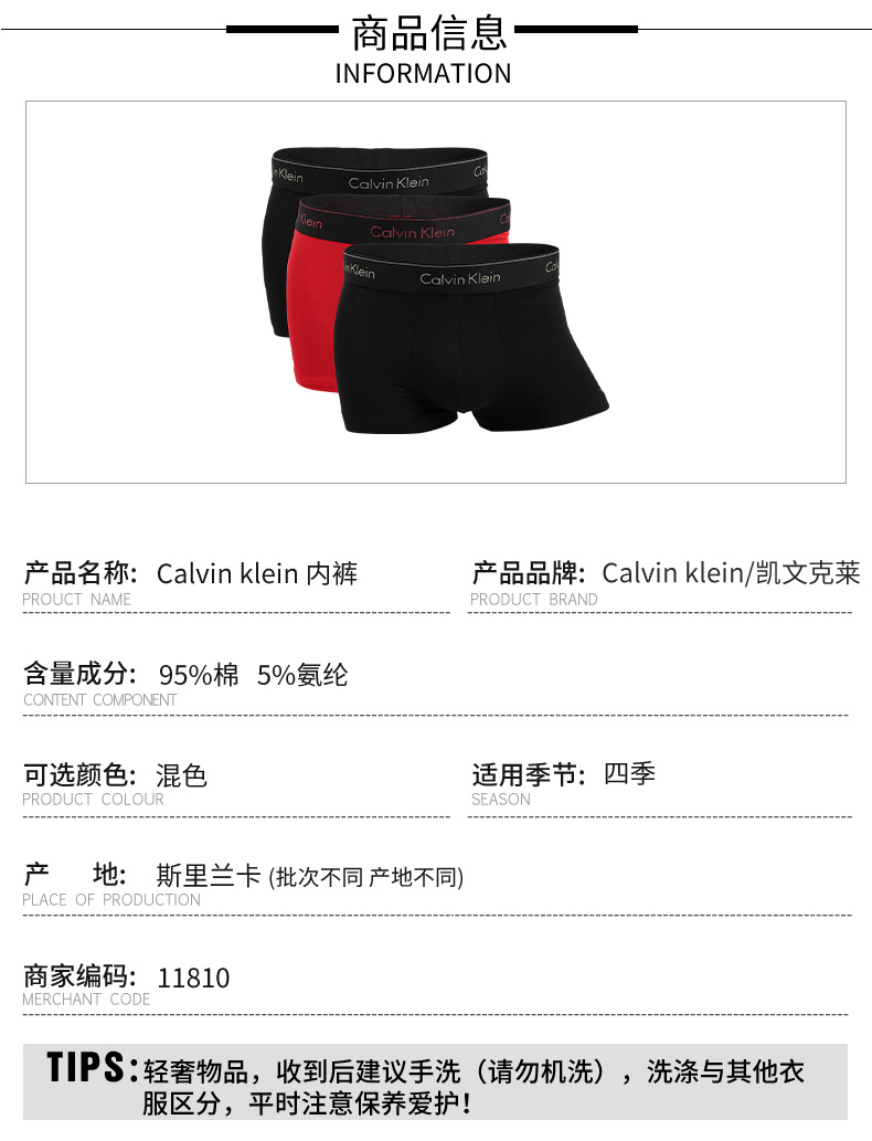 【超惠秒】Clavin Klein CK男士新晋款三件装弹棉内裤 11810