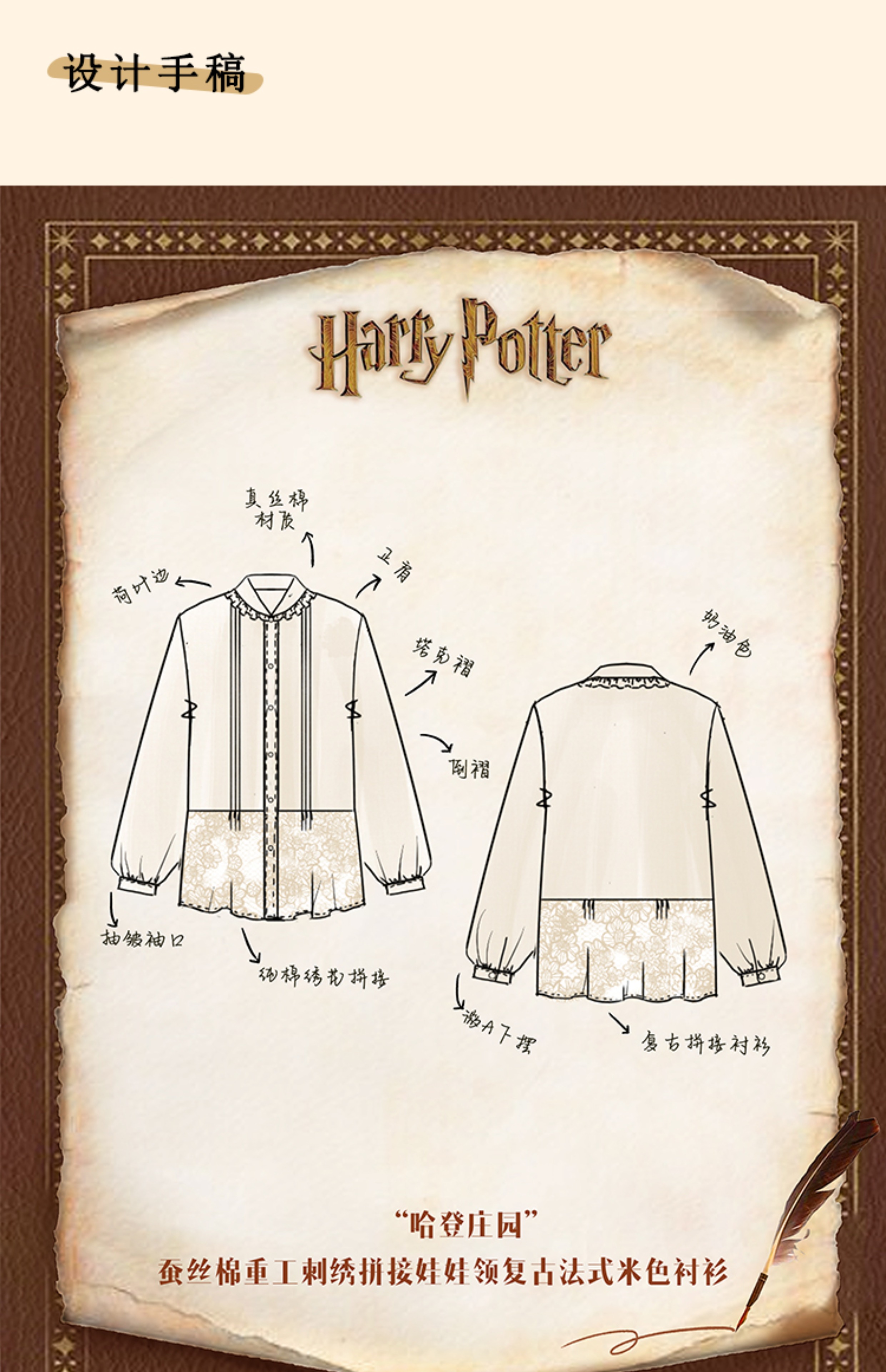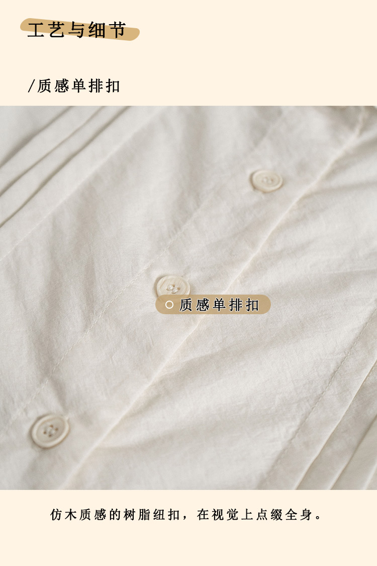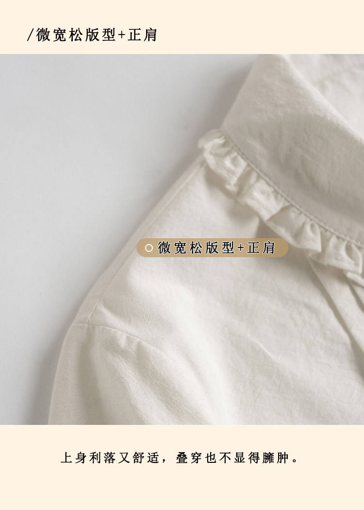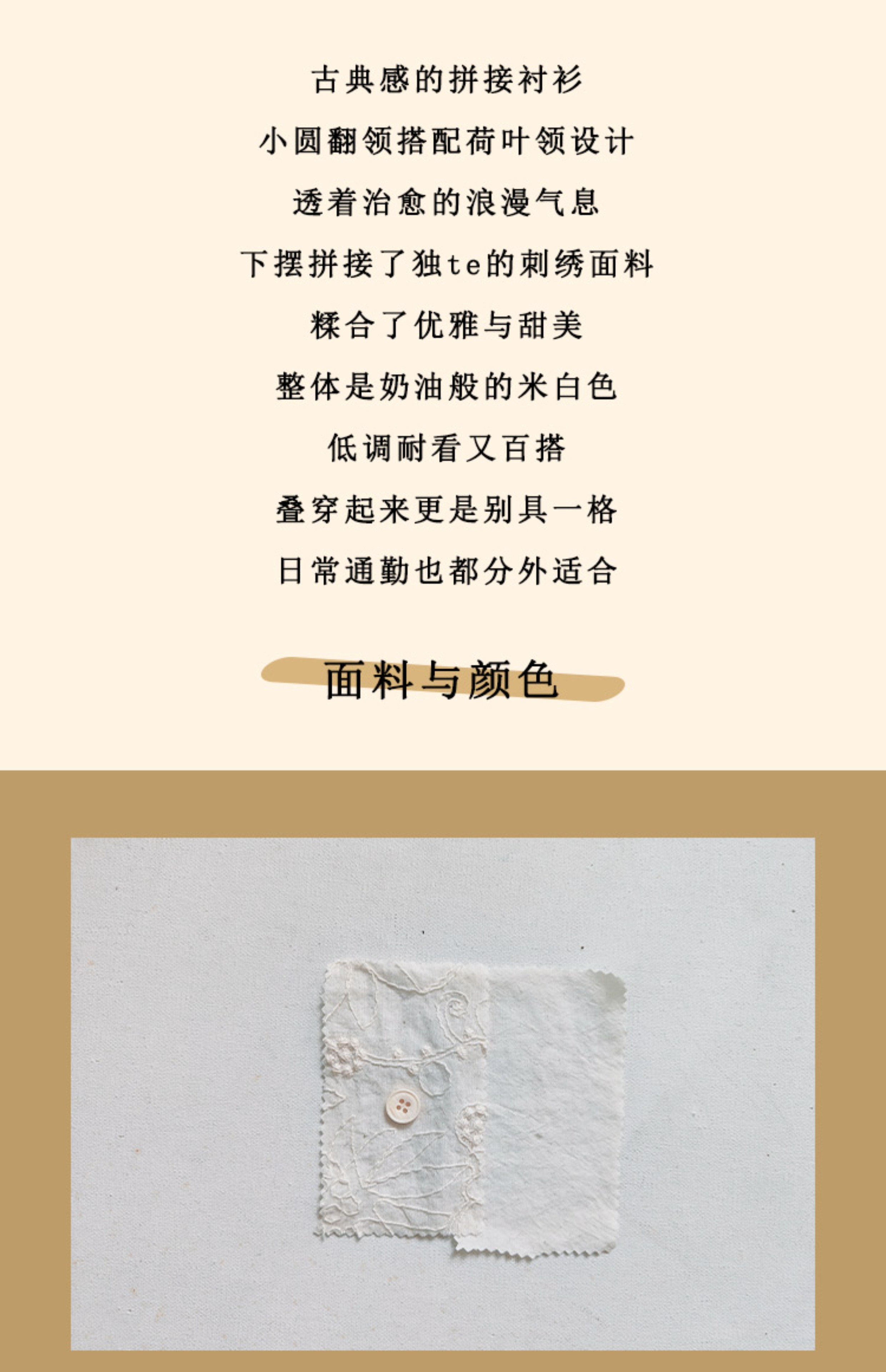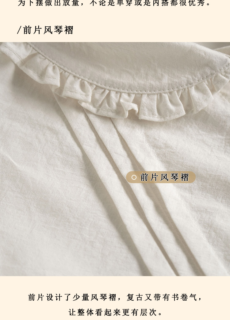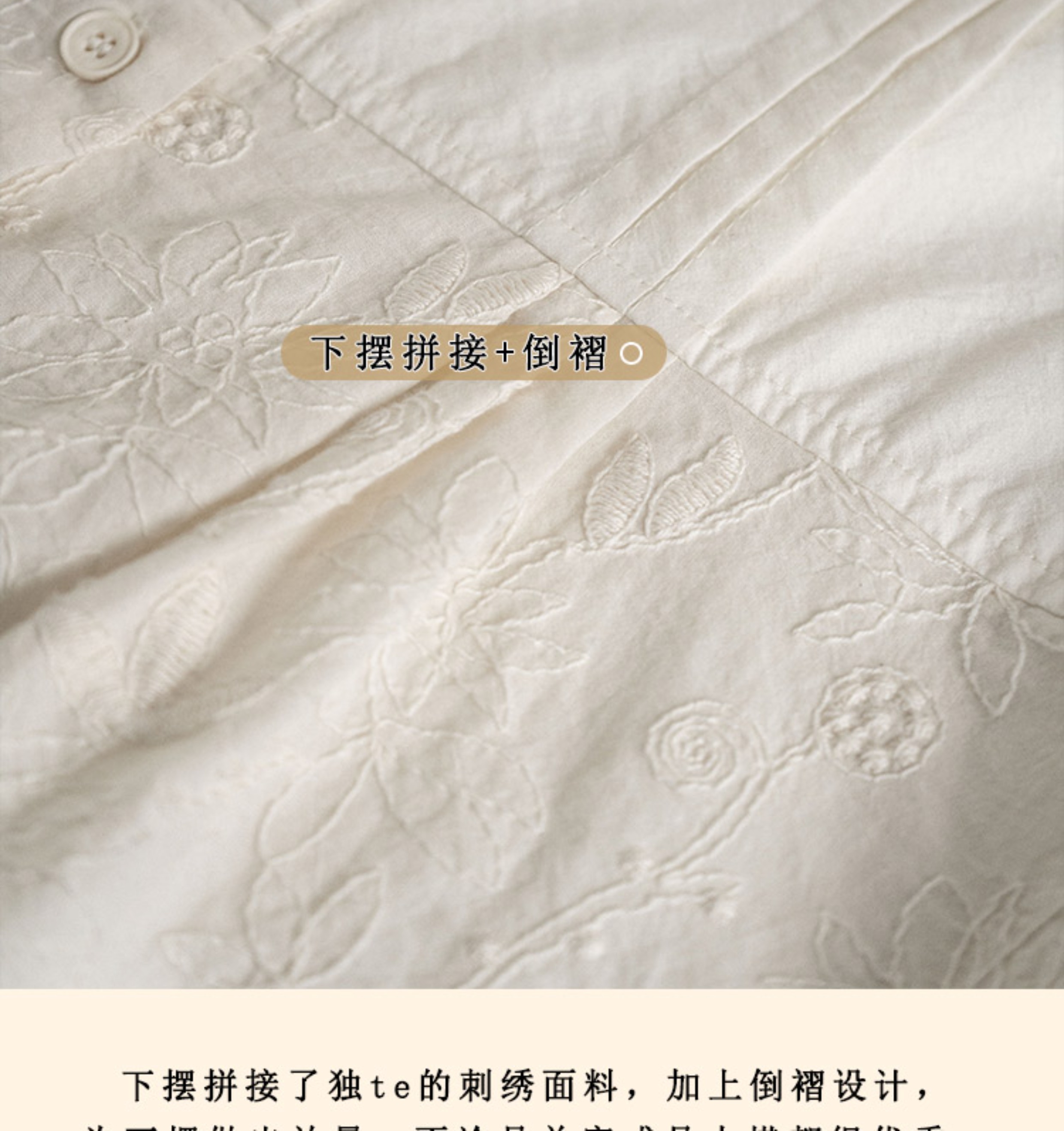 浮生八记/24D160/蚕丝棉重工刺绣拼接娃娃领复古法式米色衬衫