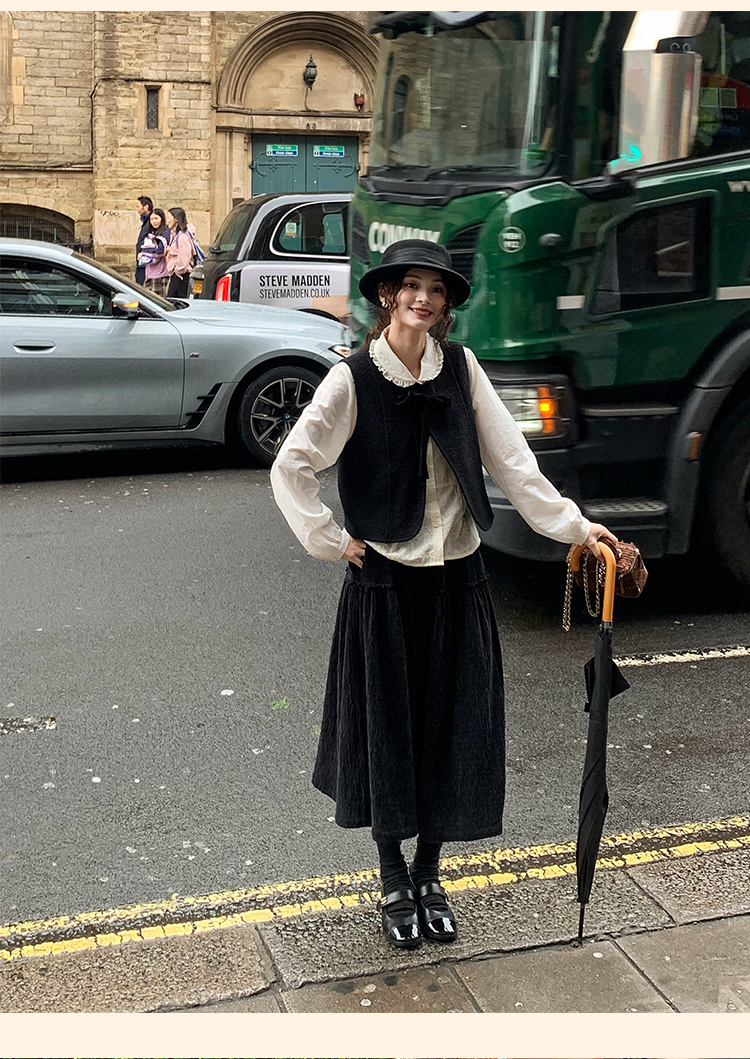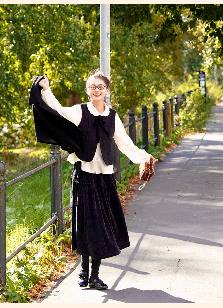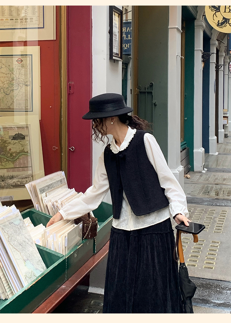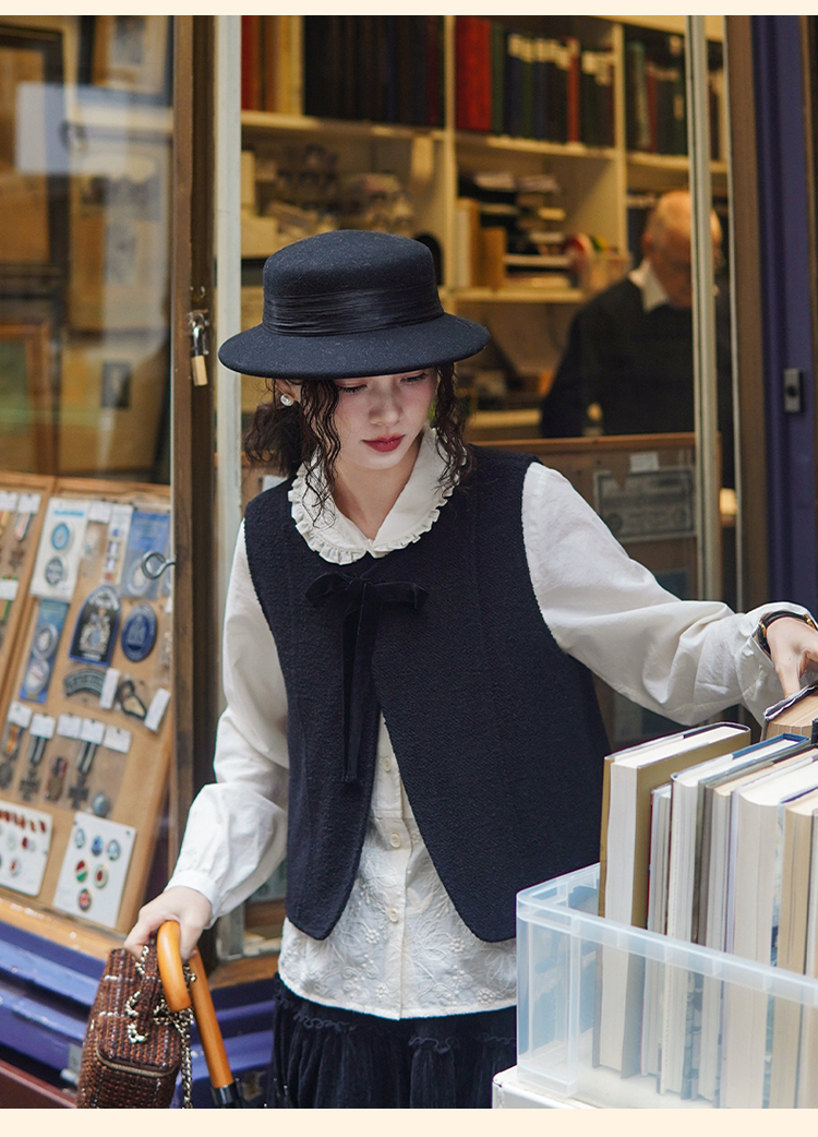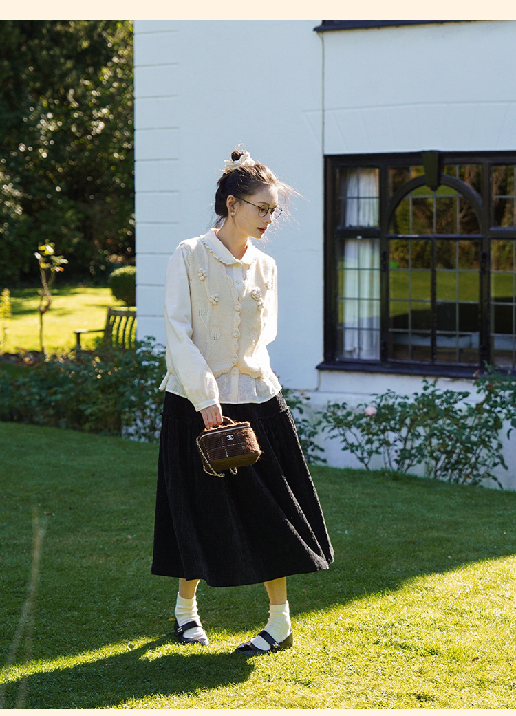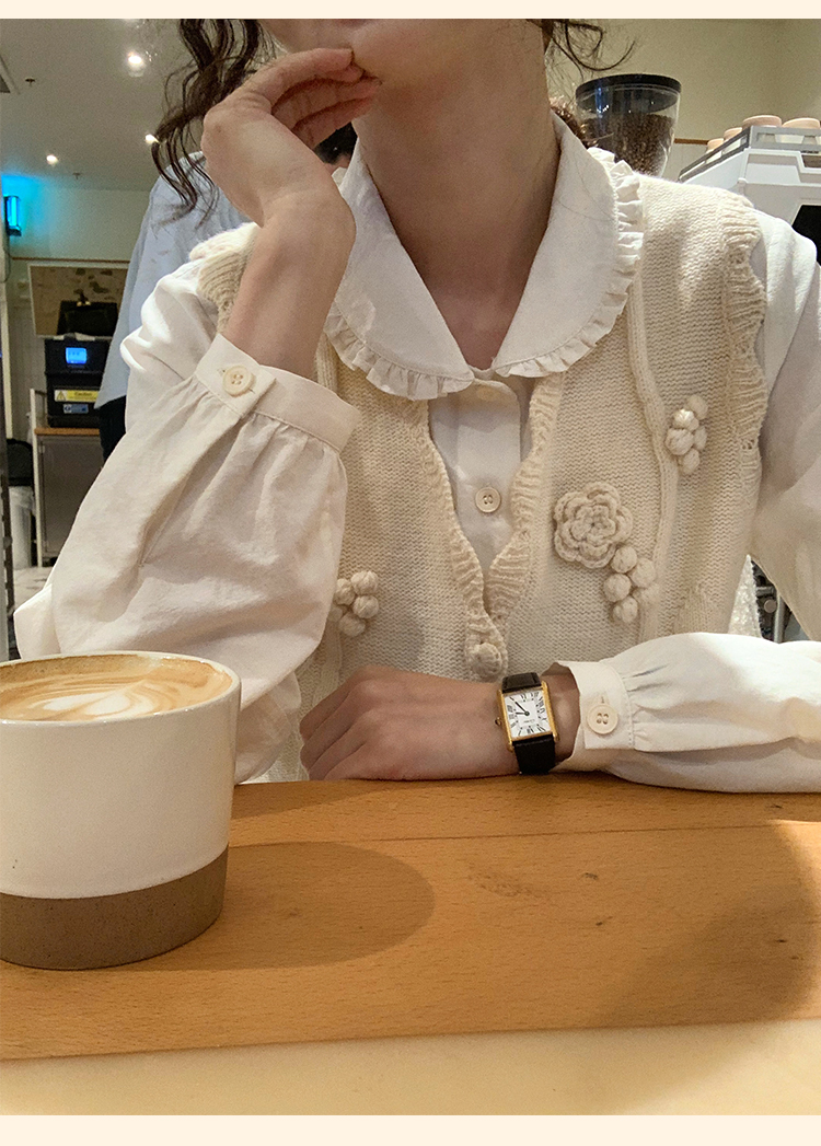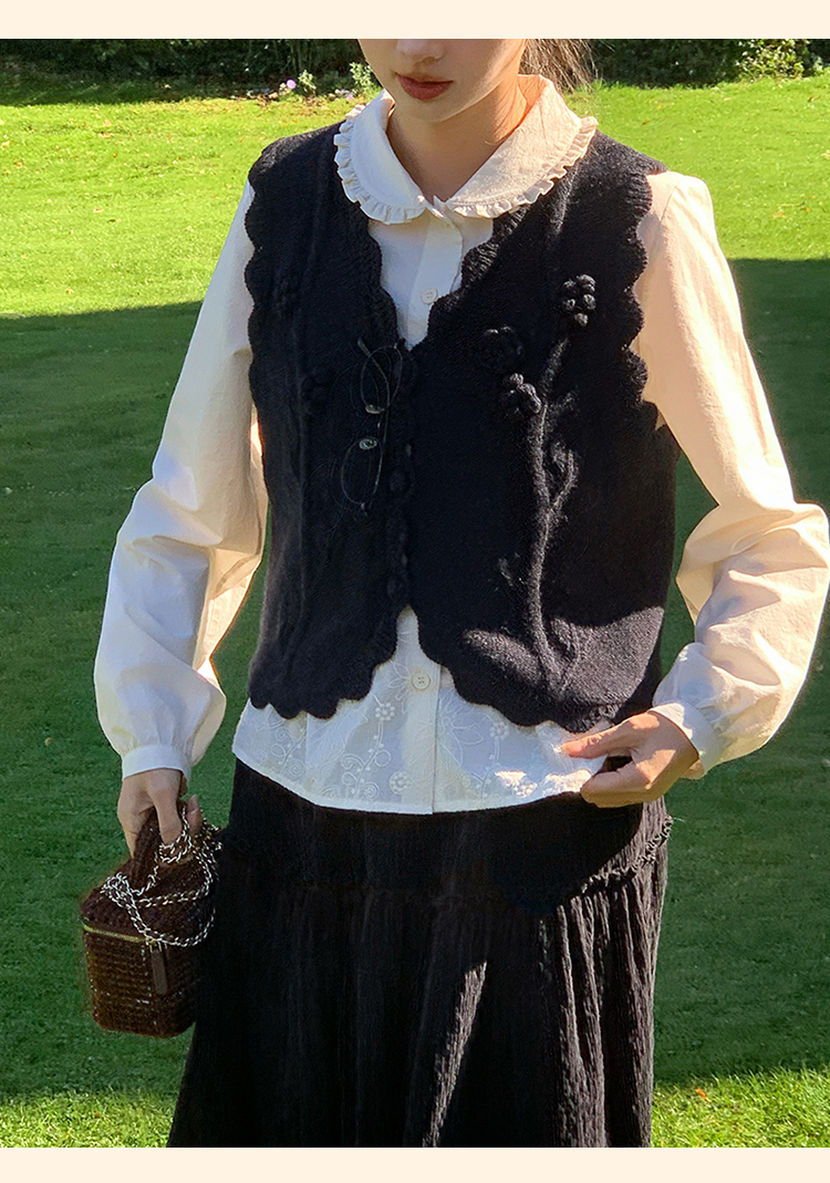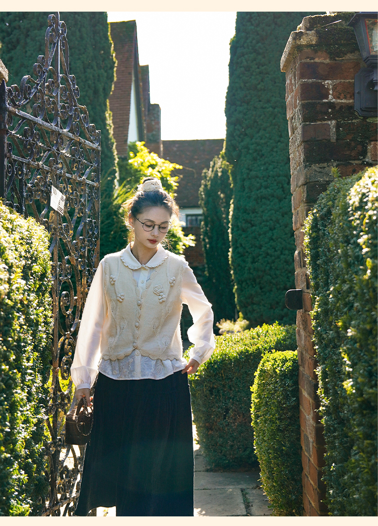浮生八记/24D160/蚕丝棉重工刺绣拼接娃娃领复古法式米色衬衫