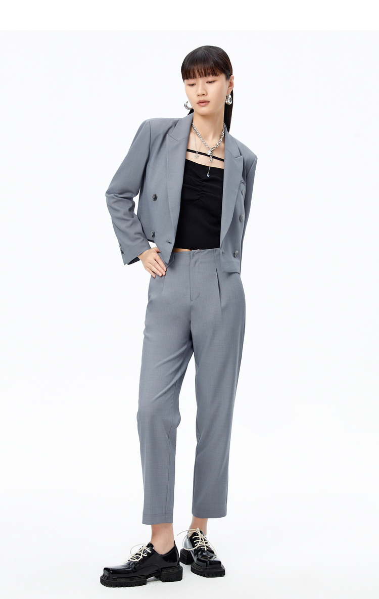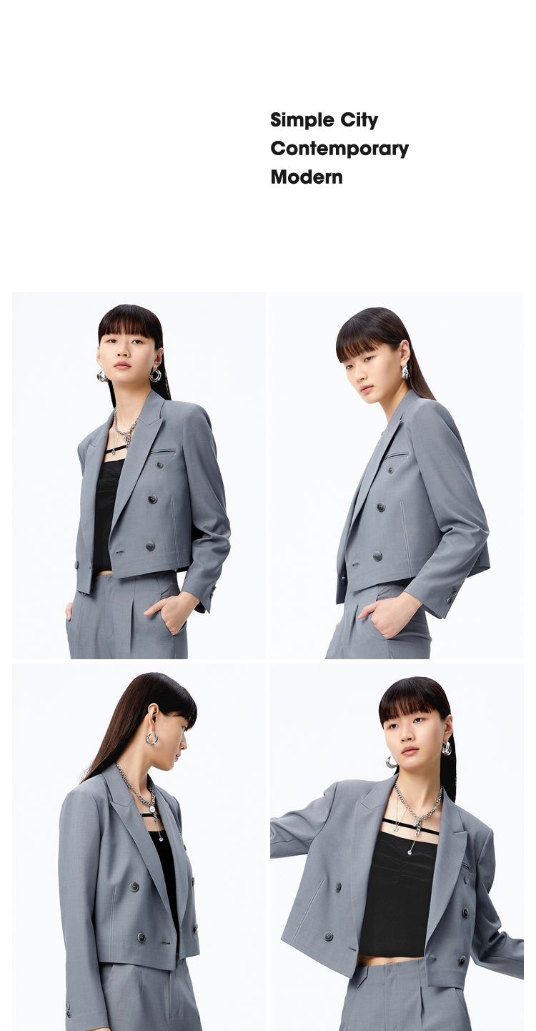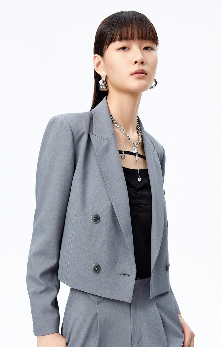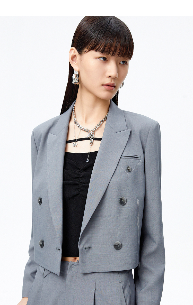 NEELLY纳俪商场同款短款西装外套女双排扣气质上衣正肩修身秋季N22072C01027
